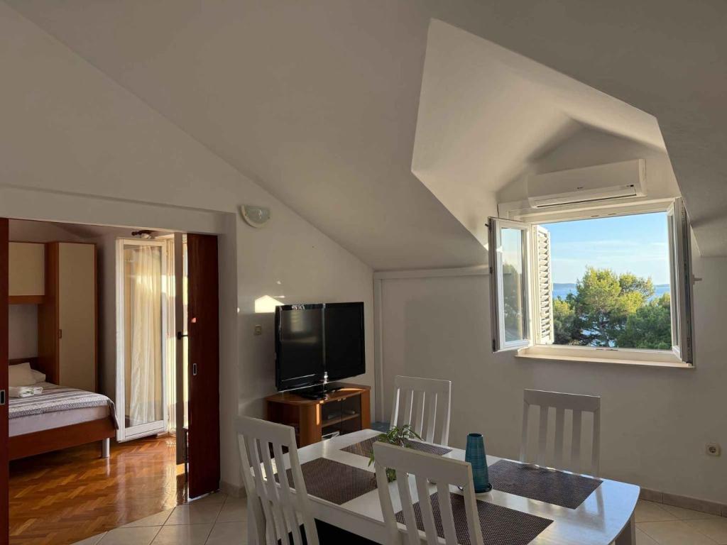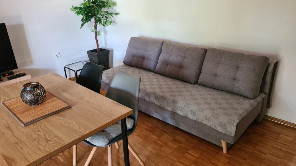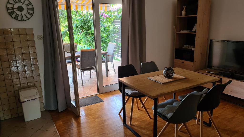 Nous avons eu le grand plaisir de passer 13 jours merveilleux dans l'appartement 2 + 2. Fantastique, extrêmement agréable et hôtes obligeants, appartement très propre (sur une échelle de 10 je donne 20) et meublé avec goût. La voiture est à l'ombre grâce au parking couvert. Marchez jusqu'à la plage (environ 5 minutes avec un chien), une ville charmante et calme, une eau cristalline dans la mer. Le plus important est que grâce au petit nombre d'appartements loués (3) c'est calme et convivial. Dans les appartements, vous trouverez tout ce dont vous avez besoin : des serviettes, un sèche-cheveux, un fer à repasser, un micro-ondes, un grille-pain, un sèche-linge, une machine à laver et même une trousse de secours. Nous saluons cordialement Mera et Dragan et vous recommandons vivement de séjourner dans vos appartements. Iwona et Jan et notre chien Psotek POLSKA