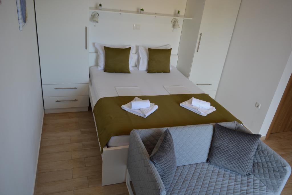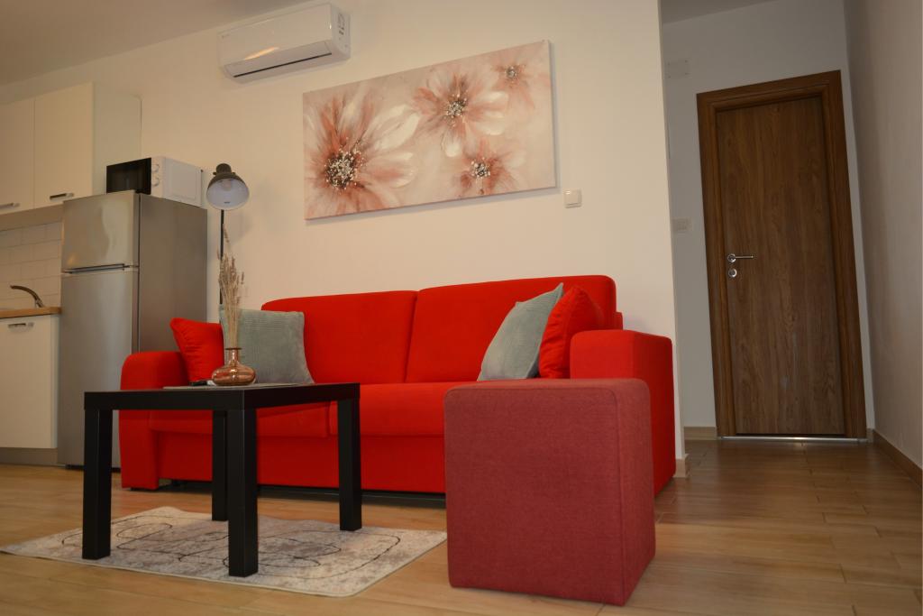 4 appartements entièrement récemment rénovés à louer à Tribunj, à 5 km de Vodice et à 12 km de Šibenik. Les appartements sont situés dans un endroit attrayant à seulement 150 m de la plage principale de la ville. A proximité immédiate de l'appartement se trouvent des restaurants, des cafés, des magasins et une pharmacie. 3 appartements (2+2) se composent d'une chambre avec un grand lit double, d'une cuisine, d'un séjour avec un canapé gigogne (canapé de qualité avec matelas), d'une salle de bain et d'un balcon avec vue sur la mer. Le studio est destiné à deux personnes. Il dispose d'une cuisine, d'un lit double, d'une salle de bain et d'un balcon avec vue mer. Tous les appartements sont climatisés, disposent d'un sèche-cheveux, d'une télévision connectée et d'une connexion Wi-Fi gratuite. Parking sécurisé devant l'appartement.