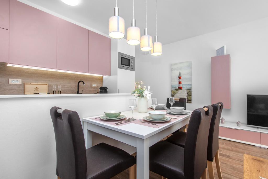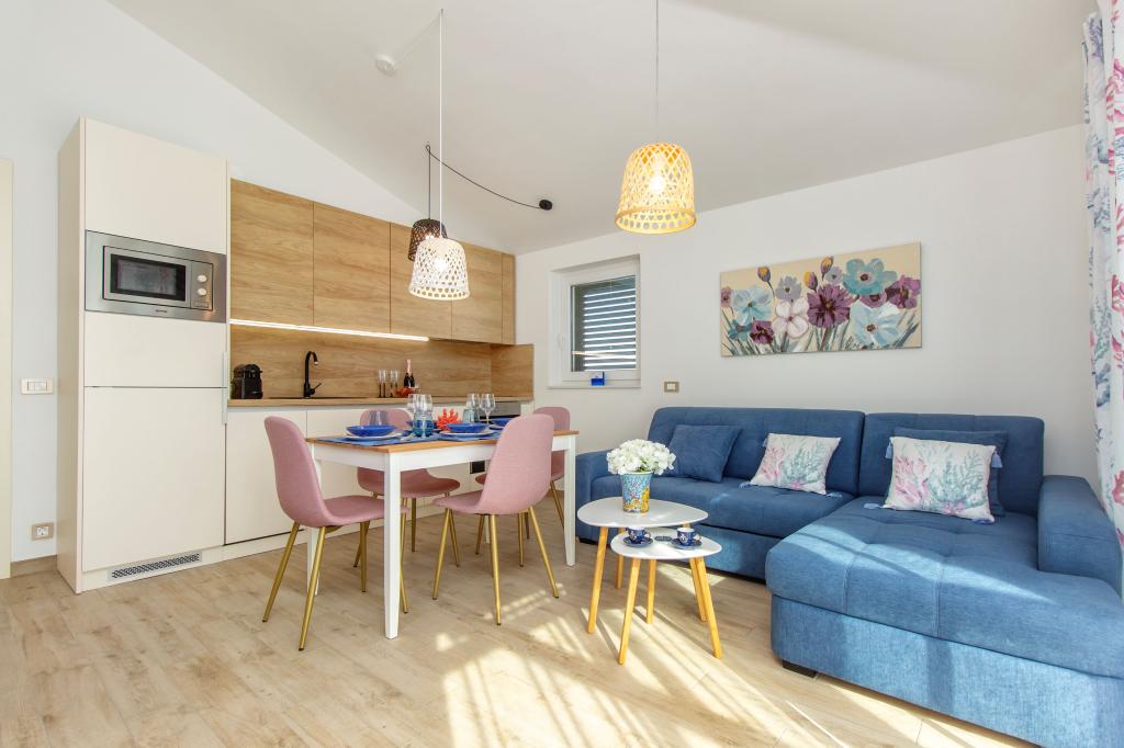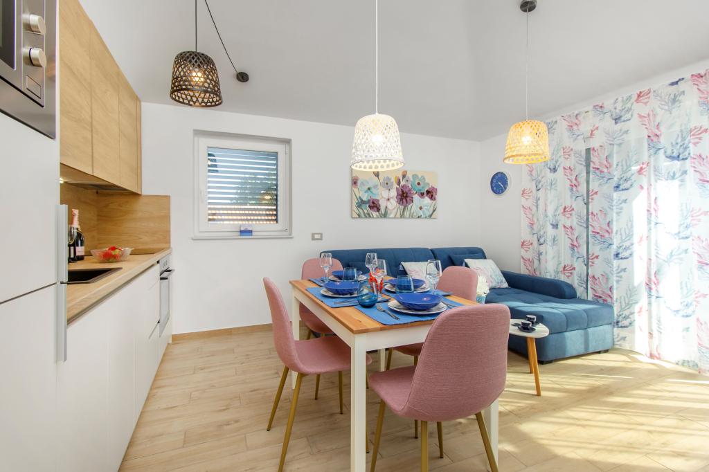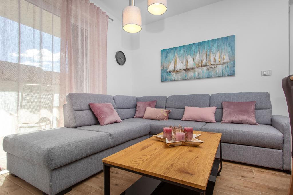 L'établissement Three Olives est un nouveau bâtiment et ouvre ses portes aux clients pour la première fois à partir de l'été 2024. Dans la cour du bâtiment se trouvent trois vieux oliviers, bois si typique de la côte et des îles croates, à partir desquels on obtient une huile de la meilleure qualité, souvent appelée "or liquide". Le nom Three Olives suggère un environnement de paix, de tranquillité et d'abondance. Les appartements de l'établissement sont uniques, modernes et entièrement équipés de manière fonctionnelle pour que vous vous sentiez à l'aise, comme dans votre propre maison ! L'installation est idéalement positionnée ; elle est située à 150m de la mer et à 200m du centre ville. Il n'y a pas de routes principales ni d'installations commerciales à proximité immédiate, ce qui garantit aux clients un calme de jour comme de nuit. Bref, tout est prêt pour vos vacances complètes.