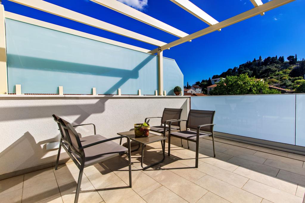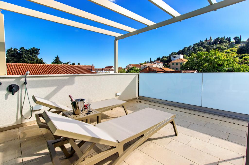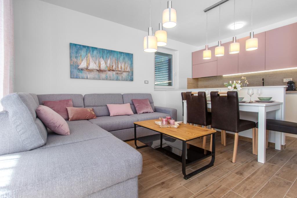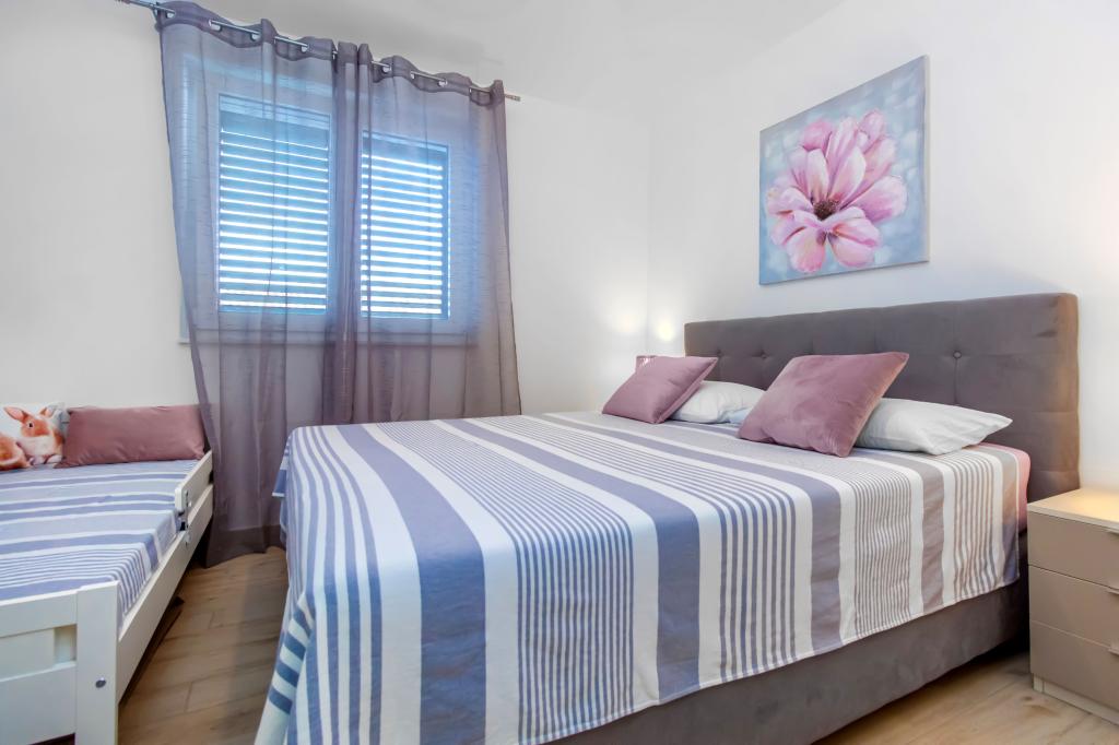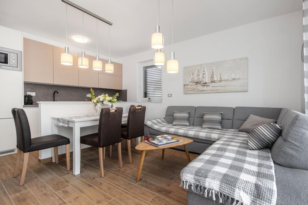 L'établissement Three Olives est un nouveau bâtiment et ouvre ses portes aux clients pour la première fois à partir de l'été 2024. Dans la cour du bâtiment se trouvent trois vieux oliviers, bois si typique de la côte et des îles croates, à partir desquels on obtient une huile de la meilleure qualité, souvent appelée "or liquide". Le nom Three Olives suggère un environnement de paix, de tranquillité et d'abondance. Les appartements de l'établissement sont uniques, modernes et entièrement équipés de manière fonctionnelle pour que vous vous sentiez à l'aise, comme dans votre propre maison ! L'installation est idéalement positionnée ; elle est située à 150m de la mer et à 200m du centre ville. Il n'y a pas de routes principales ni d'installations commerciales à proximité immédiate, ce qui garantit aux clients un calme de jour comme de nuit. Bref, tout est prêt pour vos vacances complètes.