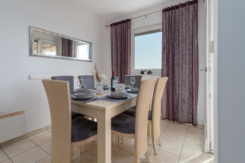Je le recommande définitivement. L'hébergement était super. Nous avons été extrêmement satisfaits. Propreté, équipement de l'appartement et confort, même sur la terrasse. Propriétaire serviable. Nous avons été surpris de la proximité à pied du centre historique de Trogir. Plage calme et relativement libre avec douche. Nous avons été ravis de la vue magnifique depuis la terrasse. De belles vacances avec des petits enfants dont nous nous souviendrons.