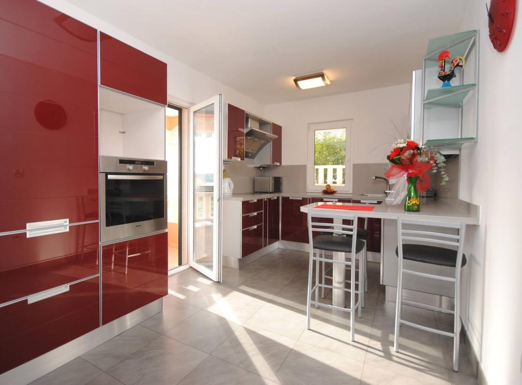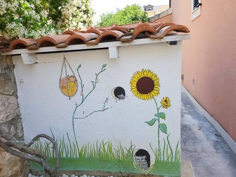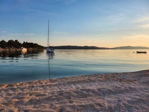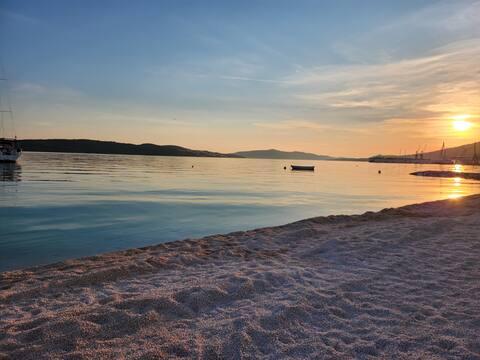 Pour nos plus jeunes hôtes, à côté de la cuisine d'été, il y a une aire de jeux équipée d'une maisonnette, d'une table, de puzzles et de jouets. Si nos clients souhaitent profiter pleinement de leurs vacances d'été, un SUP (Stand Up Paddle) peut être utilisé. C'est gratuit. Dans les environs immédiats de l'appartement, vous trouverez de nombreux cafés, restaurants et magasins – tout ce dont vous avez besoin pendant votre séjour. Le magasin le plus proche est à seulement 2 minutes, tout comme le restaurant "Mediteraneo". La plage locale se trouve également à 2 minutes à pied. Sur le chemin du retour à l'appartement, gardez à l'esprit qu'il y a une petite colline qui mène à l'appartement. Si vous avez besoin de conseils sur où manger ou où aller, vous pouvez contacter la gouvernante Lucia, qui habite au rez-de-chaussée et. se fera un plaisir de vous aider avec tout ce dont vous avez besoin. Si vous restez chez nous pendant une semaine ou plus, vous bénéficiez d'une visite gratuite de la vieille ville de Trogir avec Lucia, qui est également guide touristique agréée.