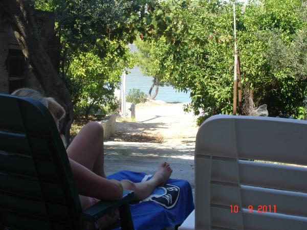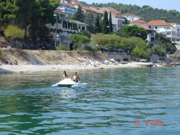 Très bon endroit pour des vacances. Près de la mer, juste à traverser la rue, d'autres plages sont également à proximité. Trogir à environ 3 km, vous pourrez aller à pied. Gospodaż très utile, conseiller ce qu'il faut voir et comment se rendre à l'endroit désiré. Nous avons eu la chance d'essayer le délicieux poisson grillé, l'huile d'olive, vin, de délicieux gâteaux, etc Très grande attraction pour les enfants sont les tortues qui peuvent alimenter et tactiles. Les parents de Drazen sont des gens merveilleux. N'importe qui peut passer du temps dans cet endroit avec ces gens.