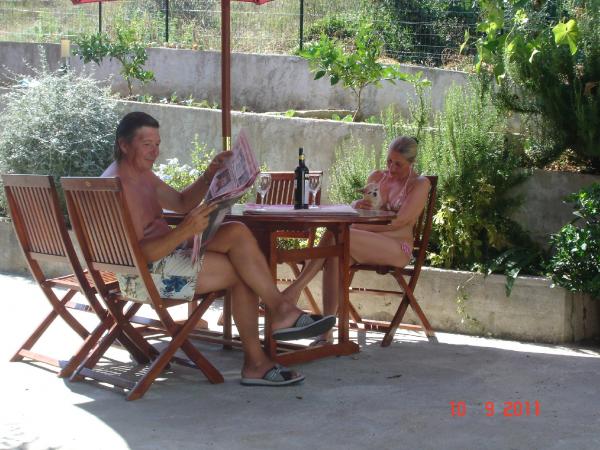 Avec sa femme en train de boire du café, et restaure les souvenirs il y a deux semaines lorsque nous avons passé la sixième saison avec la famille Maravic. Je ne peux que dire le meilleur. Des habitants très accueillants. Merci pour le très bon poisson grillé, ainsi que les risots de calmar et les seiches préparées par Rada. Nous avons également attrapé quelques poissons nous-mêmes, avec l'aide de l'hôte de Dražen, qui est également un excellent interlocuteur. Les appartements sont très bien entretenus, propres et à quelques pas de la mer. Famille Maravic encore une fois MERCI pour des journées agréables dans votre environnement. Nous venons.