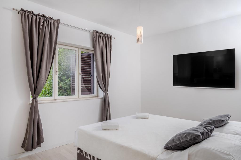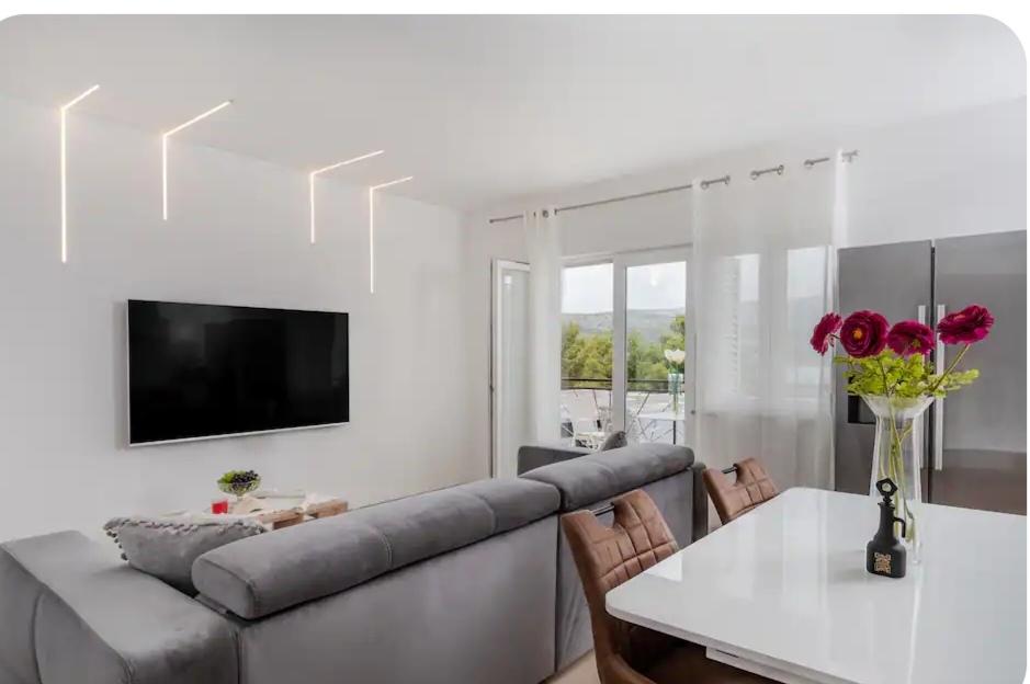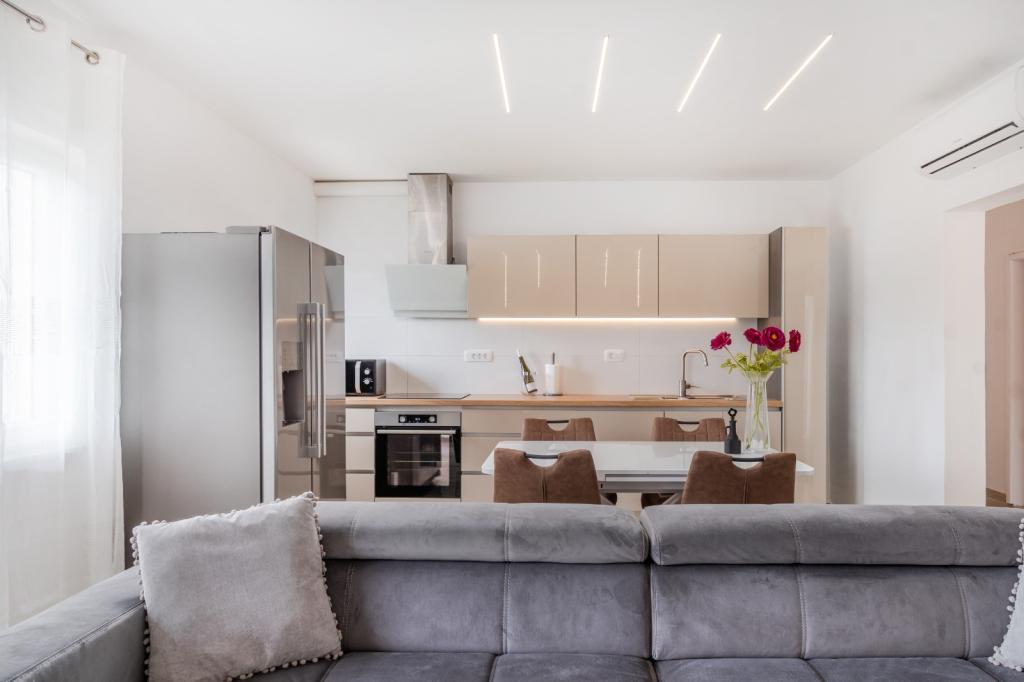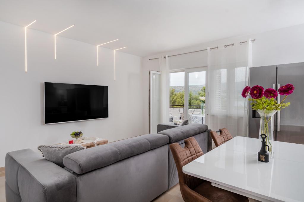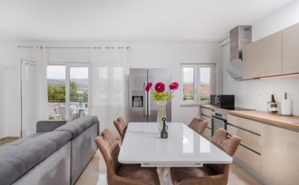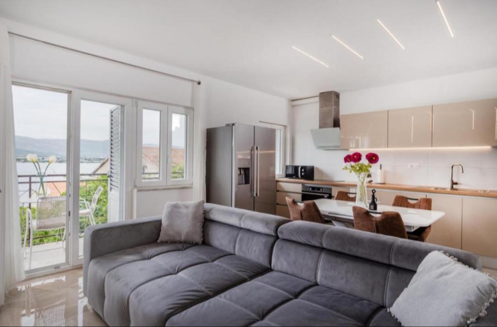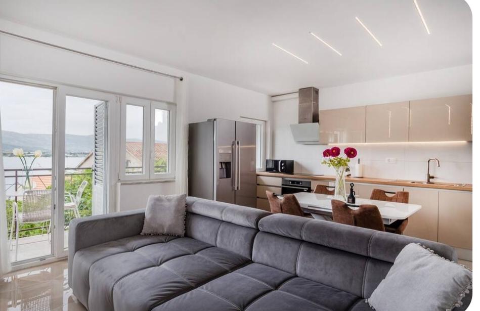 Appartement très luxueux à 1 minute de la mer. L'ensemble de l'appartement est équipé de la dernière technologie hight sense, où chaque chambre dispose de son propre climatiseur, d'une grande télévision murale vidéo et de toilettes séparées, de sorte que chaque invité ait sa propre intimité. La cuisine est équipée de nouveaux appareils haut de gamme avec lave-vaisselle, micro-ondes, cafetière, réfrigérateur avec machine à glaçons. L'appartement dispose d'un beau jardin et d'une terrasse avec vue sur la mer, et est situé à 5 minutes en voiture de l'aéroport de Split. Il y a une belle plage de sable à 10 m de l'appartement. Il est situé dans un excellent emplacement, à seulement 2 minutes du centre de Trogir et à 20 minutes en voiture du centre de Split. Non loin de l'appartement se trouve un bateau-taxi qui emmène les clients au centre de Split et par la mer.