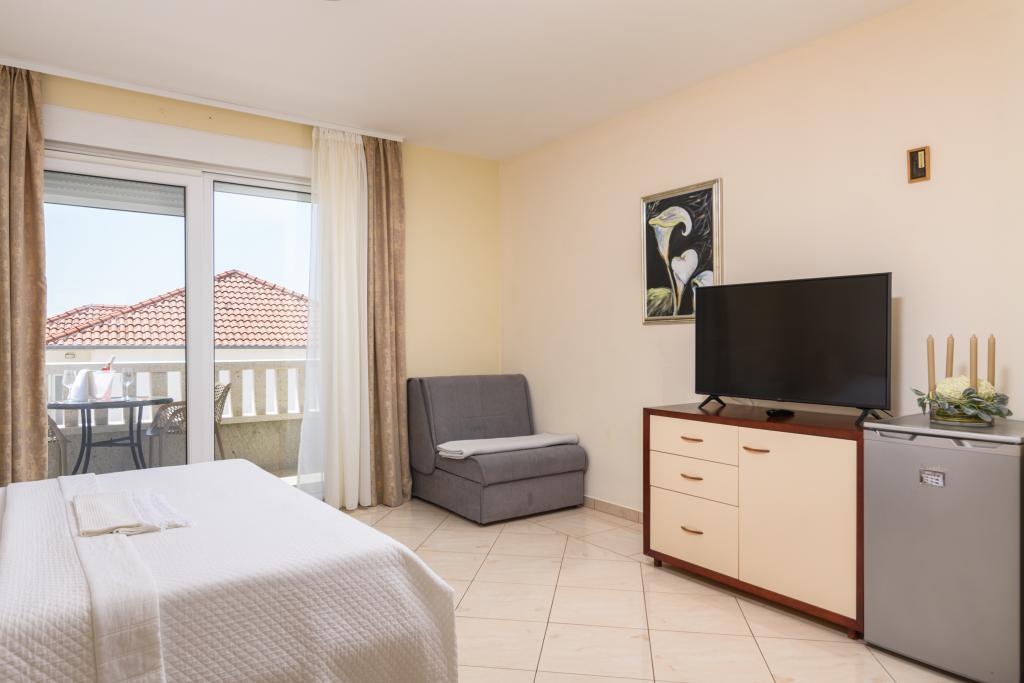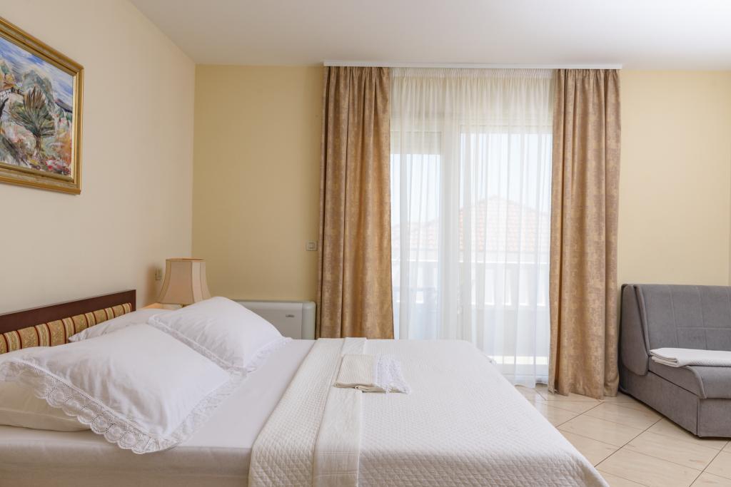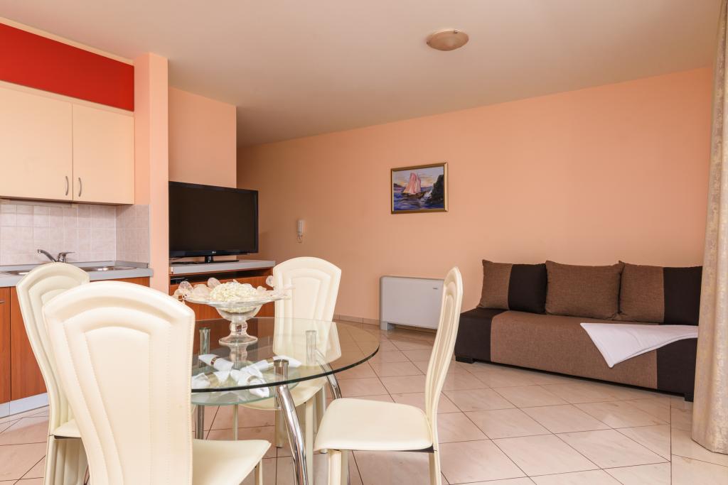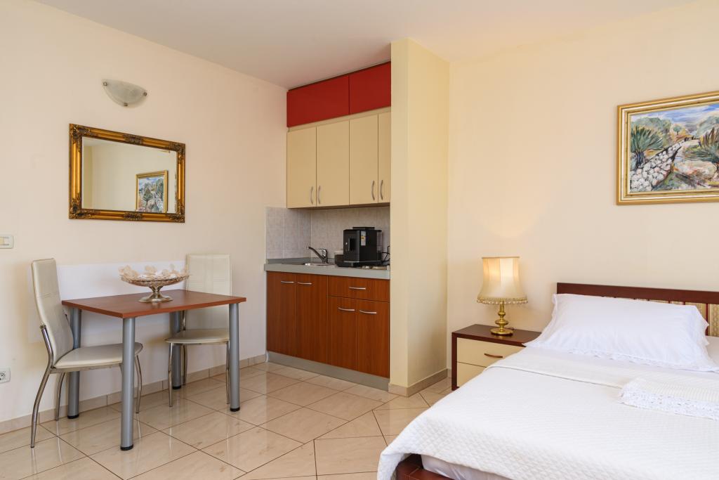 Taxe de sejour est inclus dans le prix.Appartement A2 de type 2 (51m2) - Grand salon avec cuisine et un lit pour deux personnes, une chambre double, salle de bains et balcon (12m2). Appartement de type appartement / studio A2 1 (30m2) - salle de séjour avec cuisine, lit double, canapé razvalčenje lit simple, salle de bains et balcon (6,5m2). Appartement de type / studio A2 (26m2) - salle de séjour avec cuisine, lit double, salle de bains et balcon (6,5m2). Tous nos clients peuvent utiliser un barbecue avec un four à bois situé dans le jardin et apprécier le déjeuner et le dîner aux heures plus tard dans l'intimité totale. Pour tous les clients est une société privée avant de prakig de la maison.