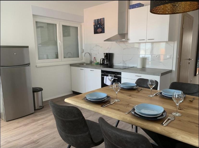 Appartement moderne meublé de très haute qualité pour se sentir bien. Rien ne manque ! L'espace extérieur avec piscine, transats et transats vous invite à la flânerie. Plusieurs plages sont accessibles à pied. La belle ville de Trogir est également accessible rapidement. Ce fut un merveilleux moment de détente ! Nous aimerions revenir.