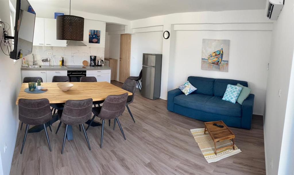 Nous avons séjourné en couple dans cette propriété pendant deux semaines. L'appartement est entièrement équipé et offre tout le nécessaire pour un séjour agréable. Le mobilier est moderne et de haute qualité. L'appartement est également très bien situé, non loin de la plage, des restaurants et des commerces. La ville de Trogir est également accessible à pied. Depuis le balcon de l'appartement, vous avez une belle vue sur la mer et l'aéroport de Split derrière, où vous pourrez regarder les avions décoller et atterrir. Le complexe dispose également d'une piscine avec de nombreuses chaises longues pour bronzer et de nombreux sièges. L'appartement est entièrement climatisé et dispose d'équipements de base tels que du linge de lit, des serviettes, un lave-linge, du détergent et bien plus encore. Nous nous sommes sentis très à l'aise ici et nous reviendrons certainement !! Hautement recommandé.