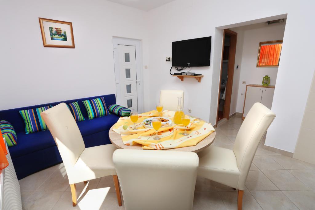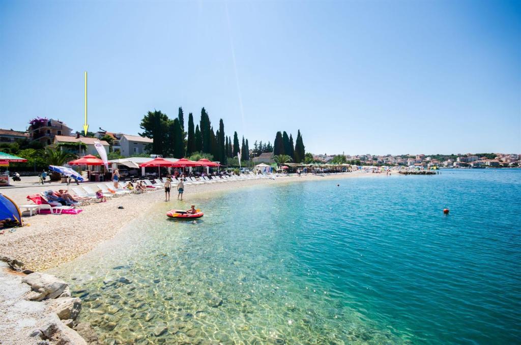 Marin appartements sont situés dans la maison de famille près du Camp Rozac sur l'île de Ciovo, à 50 mètres des belles plages. Chaque appartement dispose d'une entrée séparée, sont équipées de façon moderne, climatisé. Les appartements sont situés sur la surface de 2000m2 entouré de jardins verdoyants, d'oliviers et d'un parking 200m2. La maison familiale est situé à 1 km de la ville de Trogir, qui est connue pour sa beauté historique. Passez vos vacances dans nos unités d'hébergement et vous serez agréablement surpris.