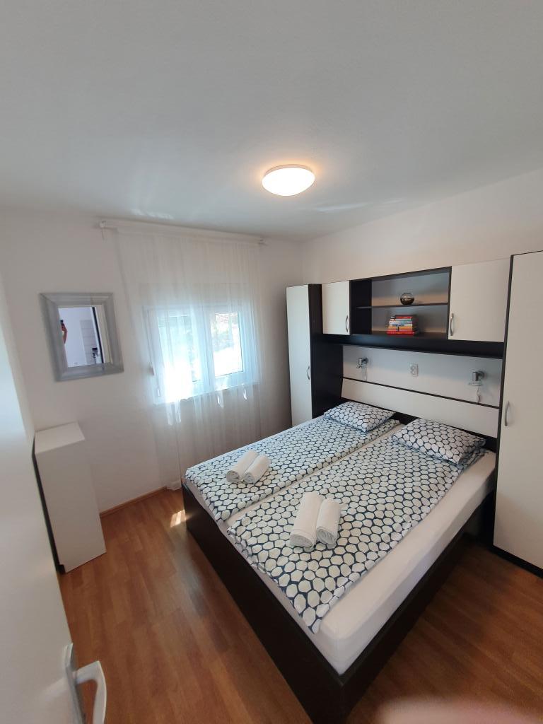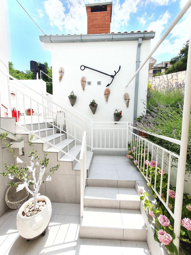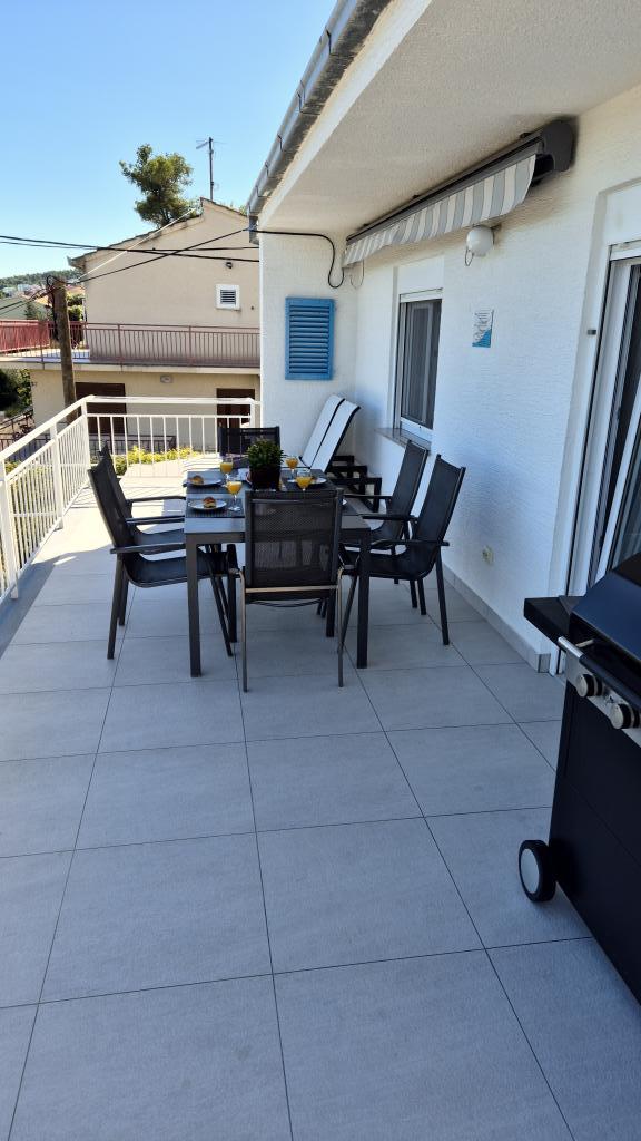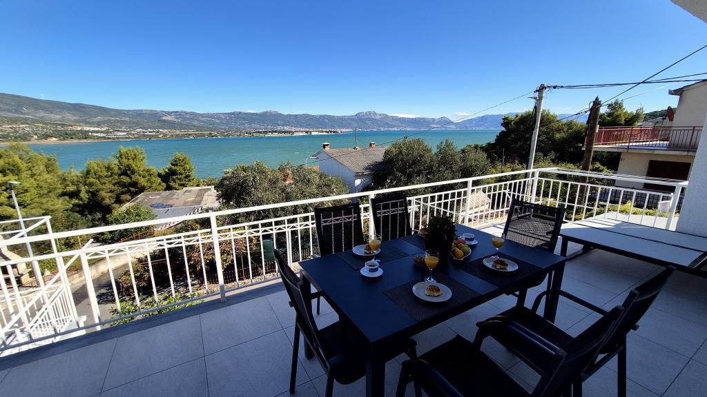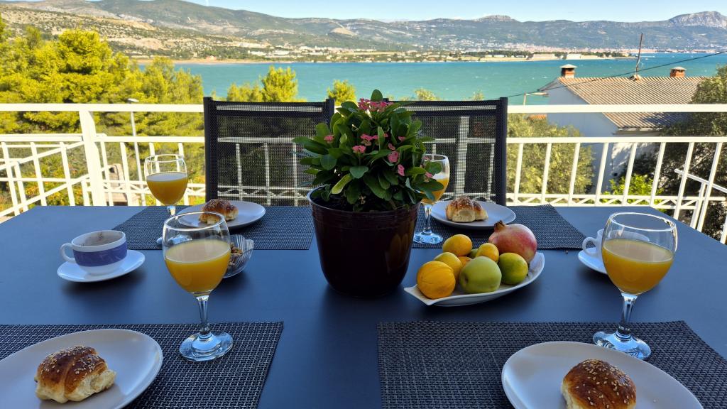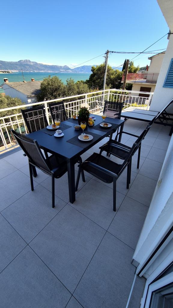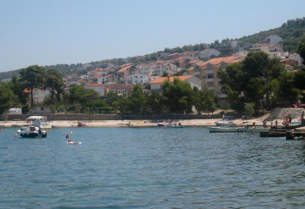 Les appartements MIRTA sont situés dans la partie nord de l'île de Ciovo, à 1,8 kilomètres à l'est du pont qui relie la vieille ville de Trogir à Ciovo. Ils sont situés dans un endroit calme, à proximité d'une pinède et de la mer. La plage de galets se trouve au pied de l'appartement. L'appartement 1 est situé au premier étage d'une maison entourée de verdure. Il se compose de deux chambres, salon avec salle à manger, cuisine et salle de bain. Il est équipé pour accueillir 4 à 6 personnes. Les chambres disposent d'un lit double et le salon dispose d'un lit d'appoint pour deux personnes. L'appartement 2 est situé au rez-de-chaussée. Il se compose de deux chambres (lits doubles), d'un séjour avec salle à manger et cuisine et d'une salle de bain. Les appartements disposent de leur propre parking, entrée séparée et barbecue à gaz. Les deux appartements disposent d'une terrasse avec une belle vue sur la mer et d'un salon de jardin. Les terrasses sont parfaites pour profiter toute la journée et socialiser au grand air.