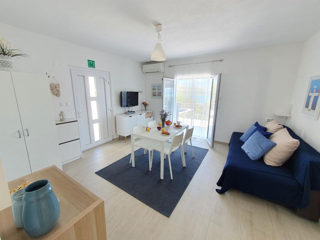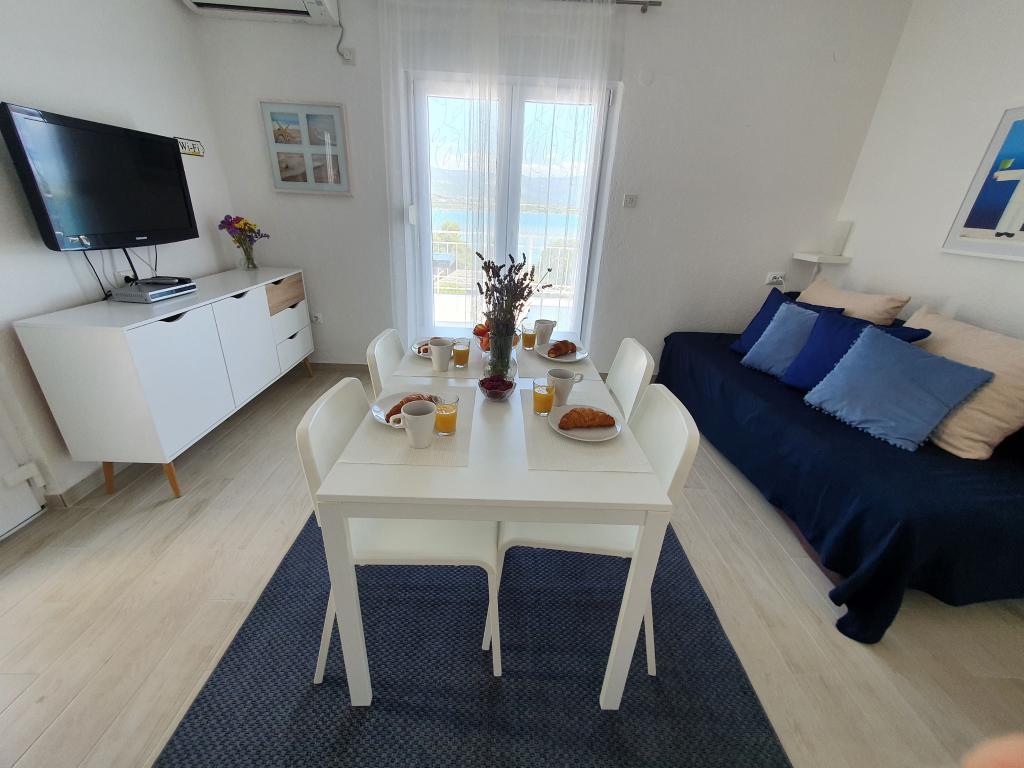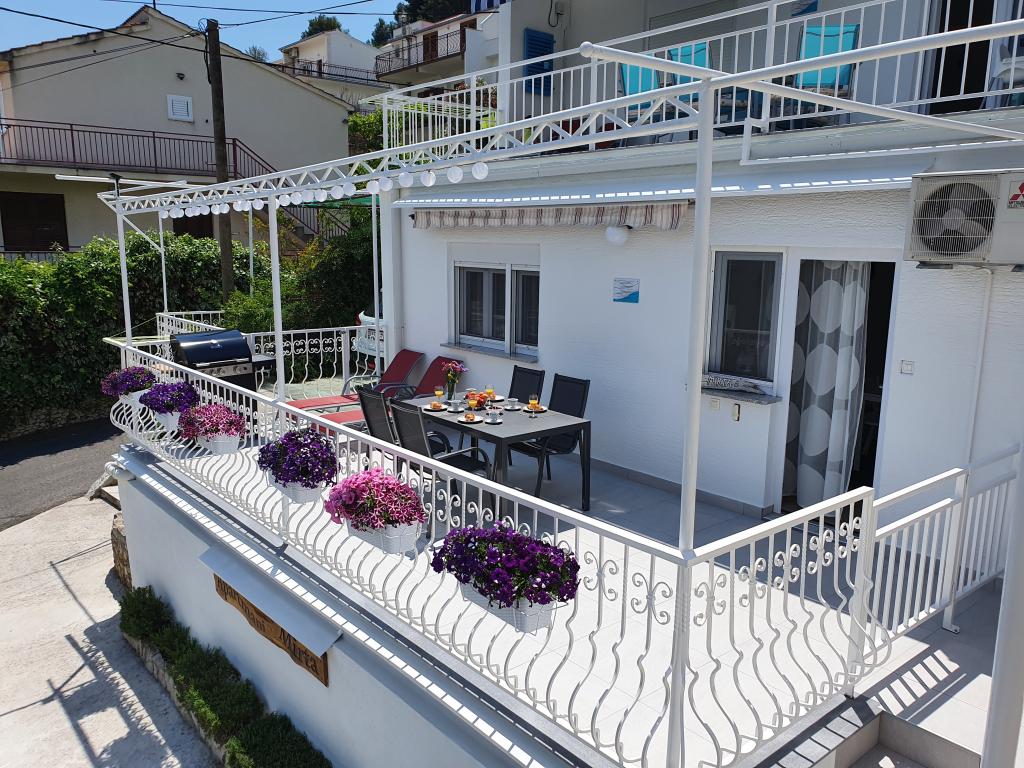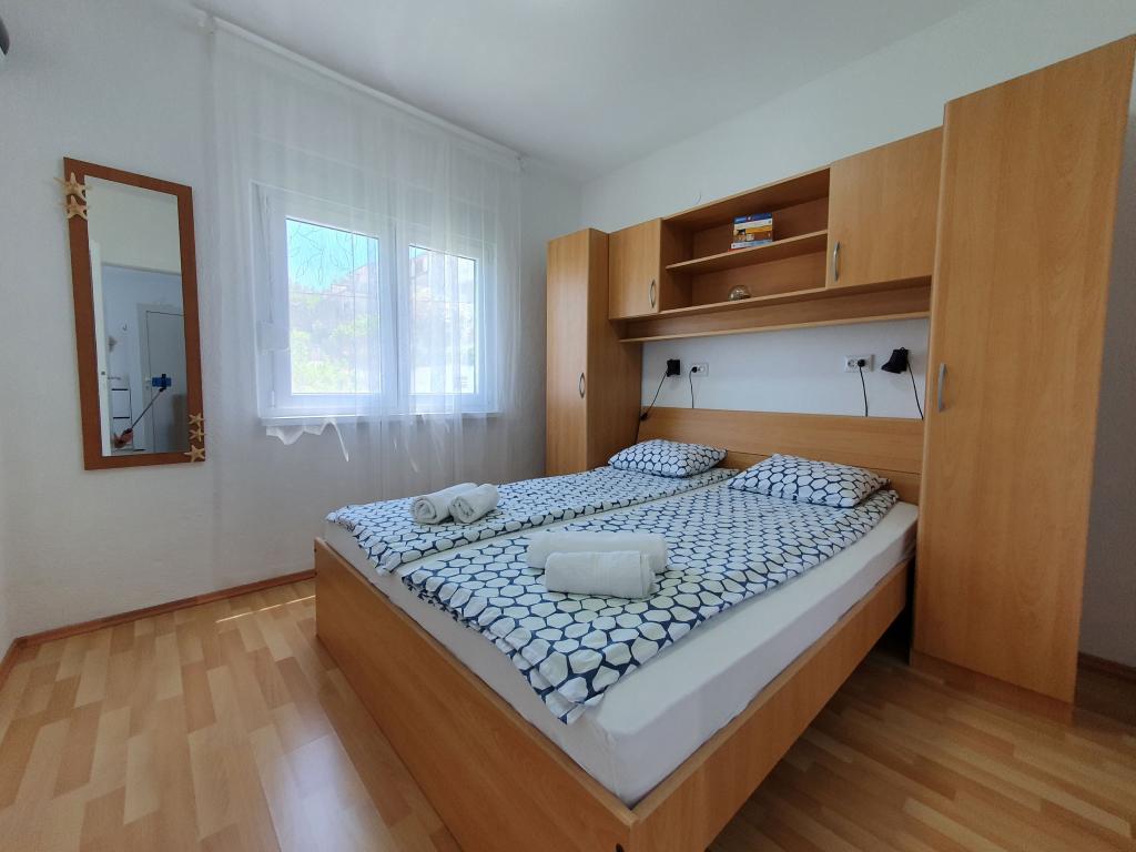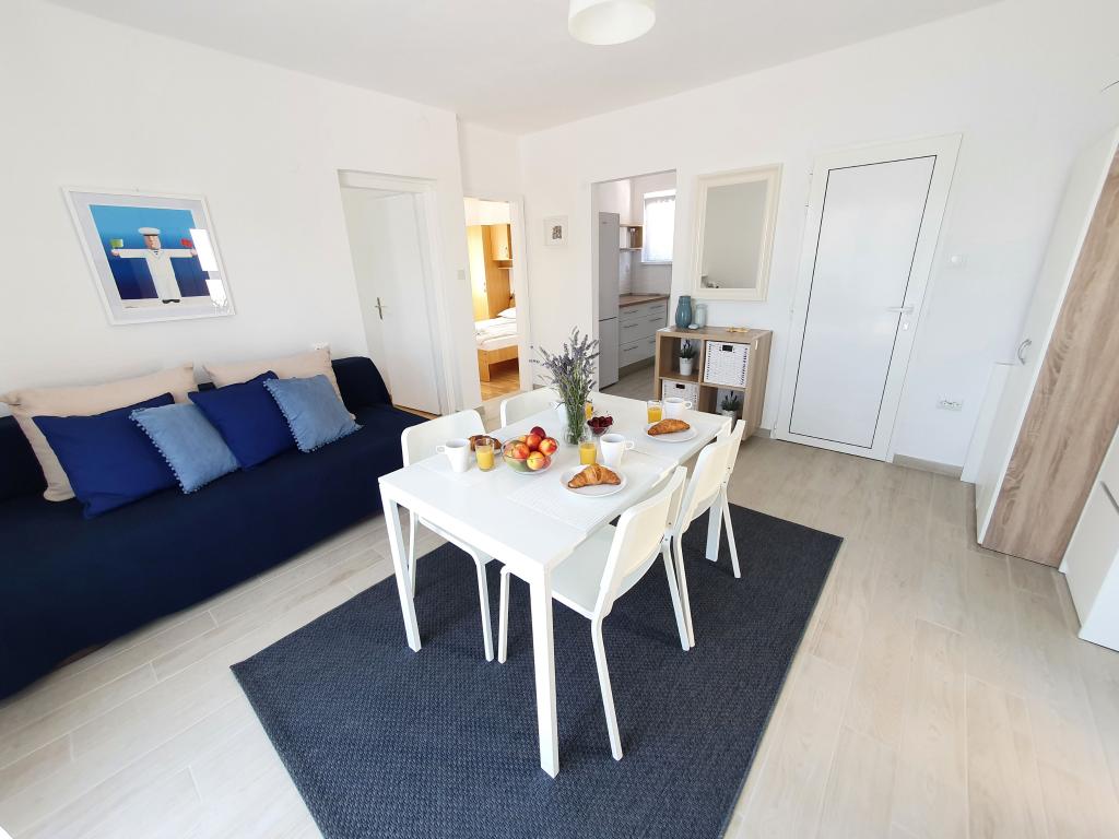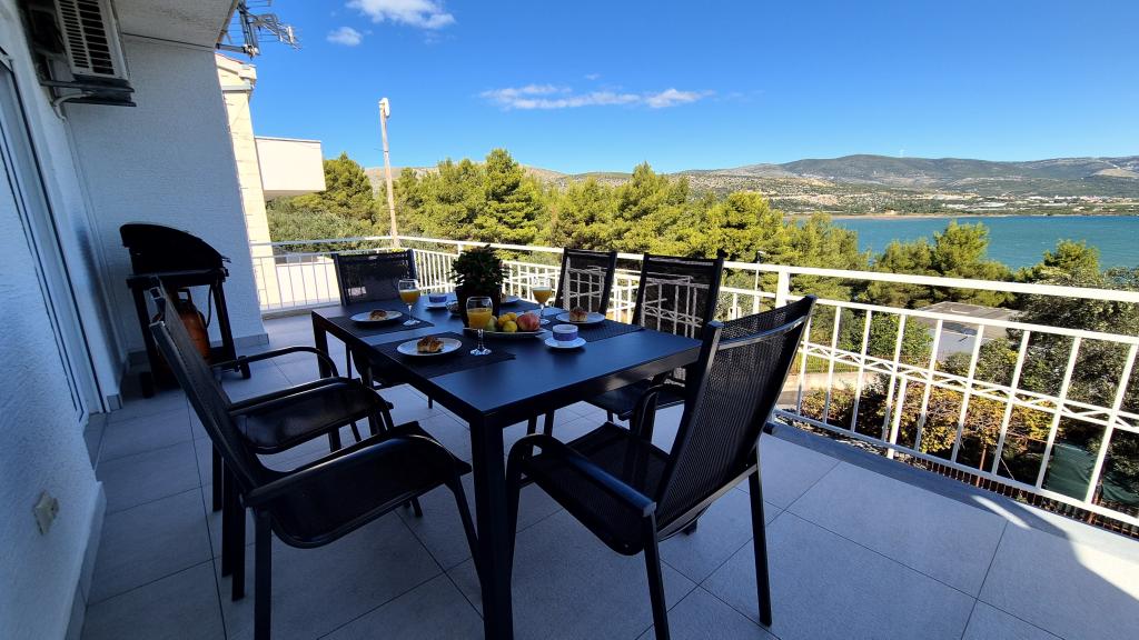 Les appartements MIRTA sont situés dans la partie nord de l'île de Ciovo, à 1,8 kilomètres à l'est du pont qui relie la vieille ville de Trogir à Ciovo. Ils sont situés dans un endroit calme, à proximité d'une pinède et de la mer. La plage de galets se trouve au pied de l'appartement. L'appartement 1 est situé au premier étage d'une maison entourée de verdure. Il se compose de deux chambres, salon avec salle à manger, cuisine et salle de bain. Il est équipé pour accueillir 4 à 6 personnes. Les chambres disposent d'un lit double et le salon dispose d'un lit d'appoint pour deux personnes. L'appartement 2 est situé au rez-de-chaussée. Il se compose de deux chambres (lits doubles), d'un séjour avec salle à manger et cuisine et d'une salle de bain. Les appartements disposent de leur propre parking, entrée séparée et barbecue à gaz. Les deux appartements disposent d'une terrasse avec une belle vue sur la mer et d'un salon de jardin. Les terrasses sont parfaites pour profiter toute la journée et socialiser au grand air.