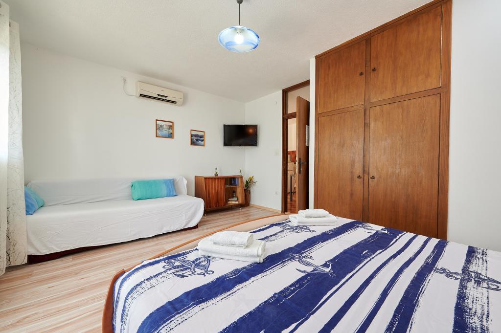 A2 + 1, A4 Les appartements sont bien équipés et tout en eux. La terrasse offre une vue magnifique. Il dispose de son propre parking. Vous pouvez également barbecue dans la cour. Le quartier est calme et paisible. La plage est très proche et pas trop de monde. Depuis l'île a toujours la prise est pas digne de s'asseoir dans la voiture. La vieille ville est à seulement 5 minutes à pied. Le propriétaire est très gentil et serviable.