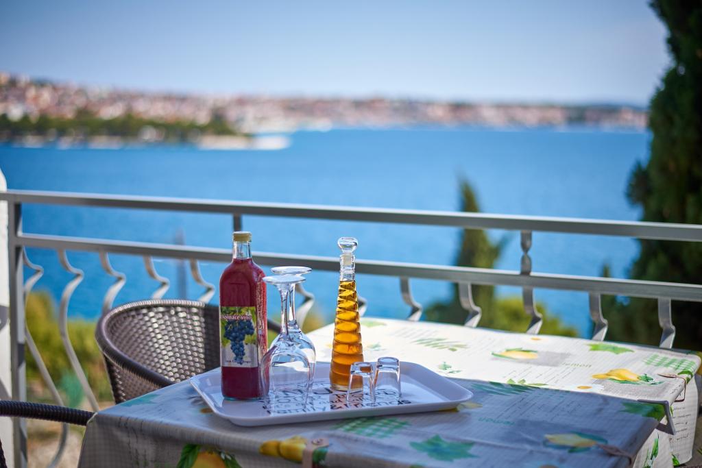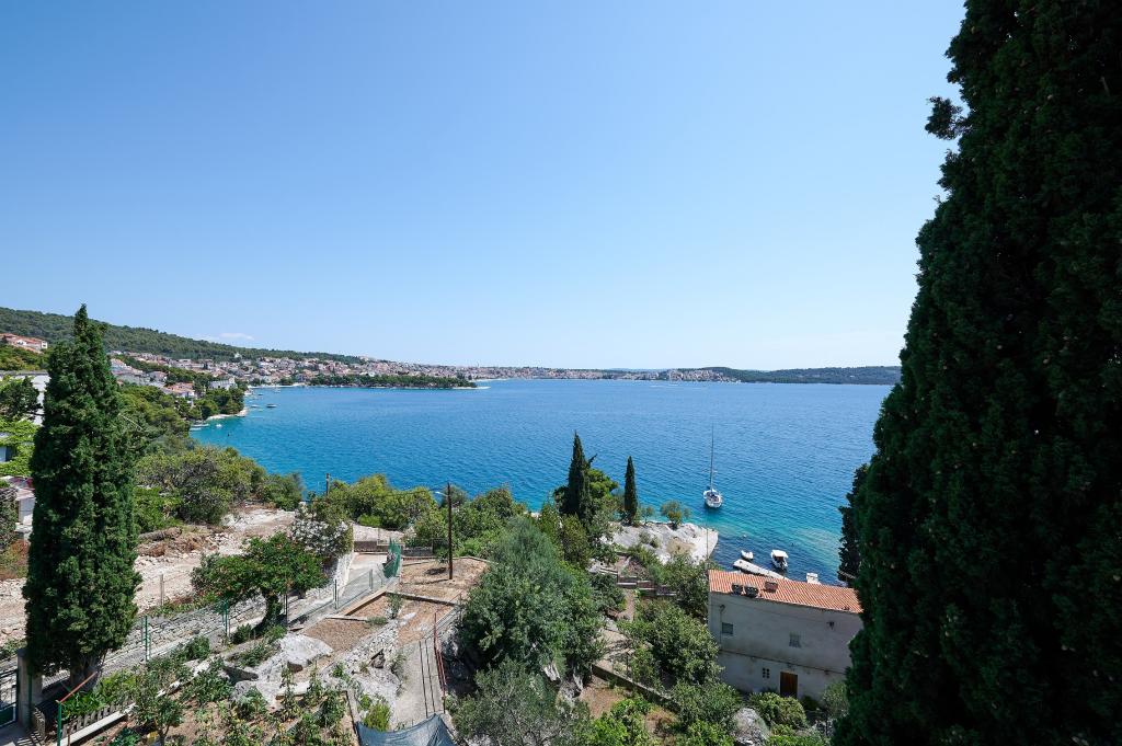 Excellente plage juste en dessous de l'appartement. Ombre à apprécier sur le balcon avec vue sur la mer. Super dîner et socialisation avec les hôtes. Si proche de Trogir (moins de 10 minutes de marche lente). Tous les 5