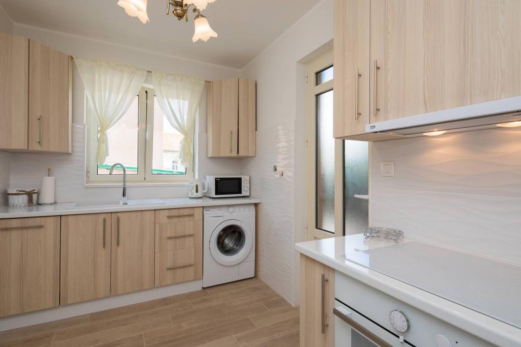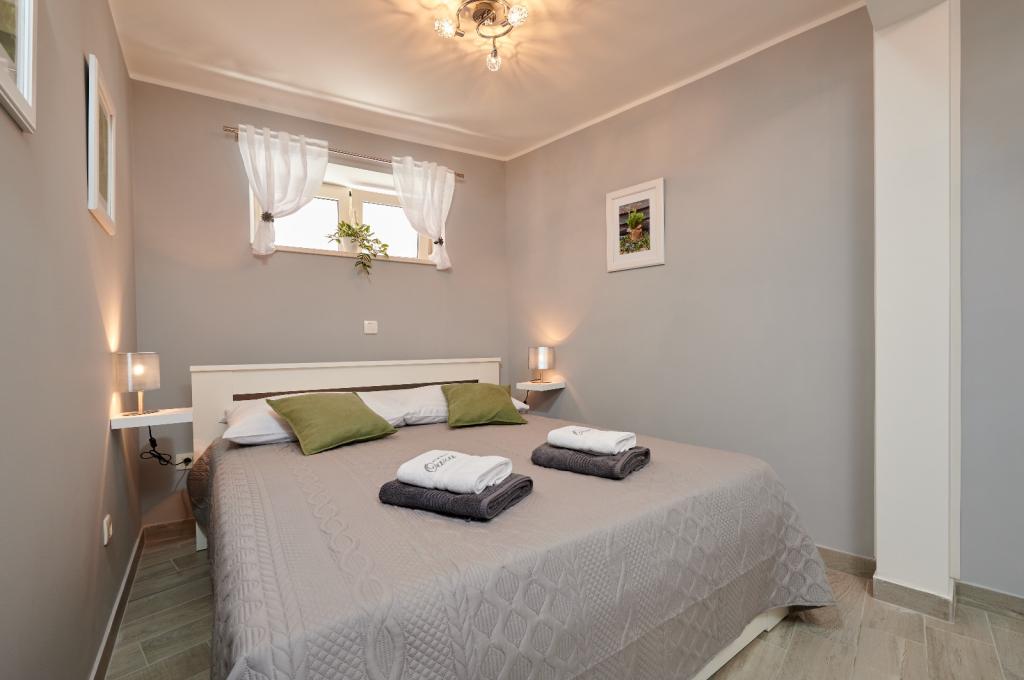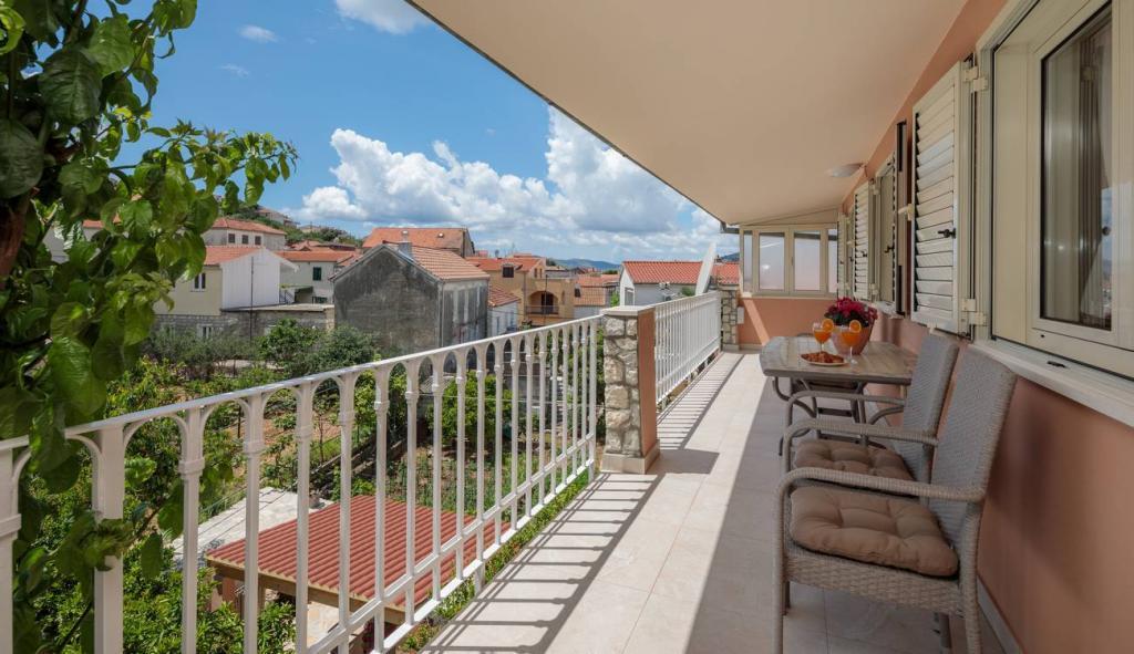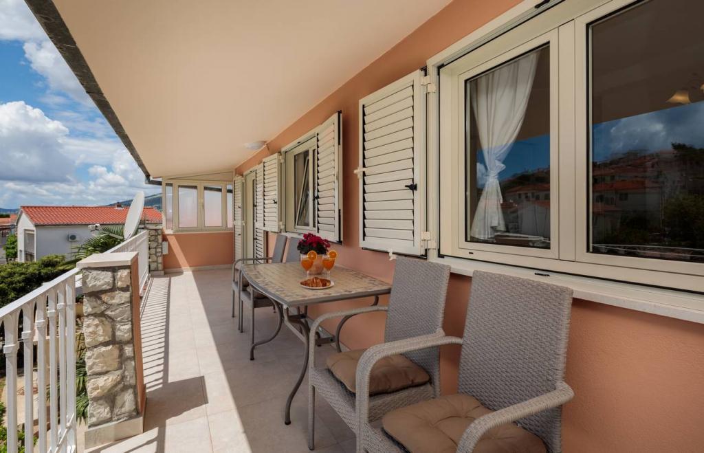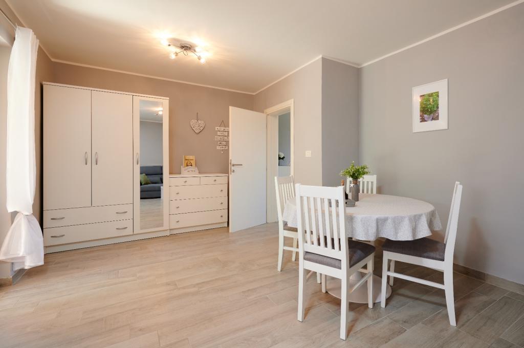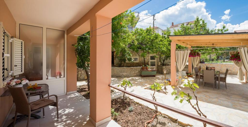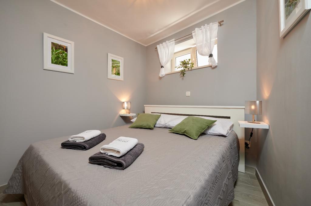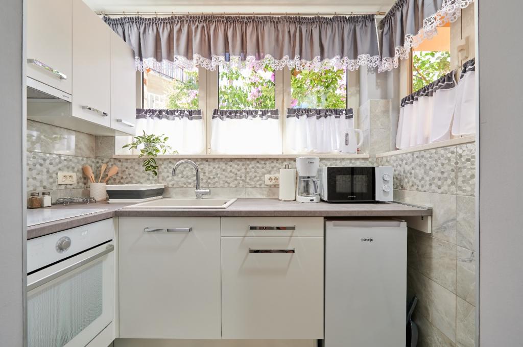Les appartements Oaza sont situés sur le côté nord de la péninsule de Čiova, reliée par 3 ponts au centre historique de Trogir et au continent. Notre maison est à seulement 5 minutes à pied du cœur de Trogir. Le bon emplacement de l'appartement permet un accès rapide et facile au centre-ville ainsi qu'aux plages qui s'étendent sur toute la longueur de la péninsule. A proximité immédiate de nos appartements se trouvent des magasins, une boulangerie, une poste, une pharmacie, des restaurants proposant des spécialités dalmates, des cafés et une gare routière. Appartement 2+2 (pour max. 4 personnes) Il est situé au deuxième étage. L'appartement dispose d'une cuisine entièrement équipée reliée au salon, d'une salle de bain avec douche et de deux chambres doubles - une avec un lit double et l'autre avec deux lits simples. L'appartement dispose de 2 balcons, celui du sud avec vue sur la surface verte de la péninsule de Ciovo et le jardin, et celui du nord avec vue sur la mer, Trogir et la montagne Kozjak. Studio 3 (pour max. 3 personnes) Il est situé au rez-de-chaussée de notre maison familiale. L'appartement dispose d'une cuisine entièrement équipée et d'une salle de bain
