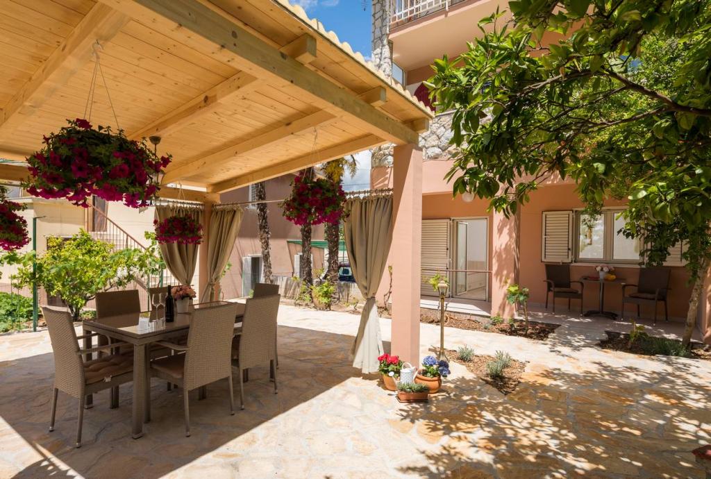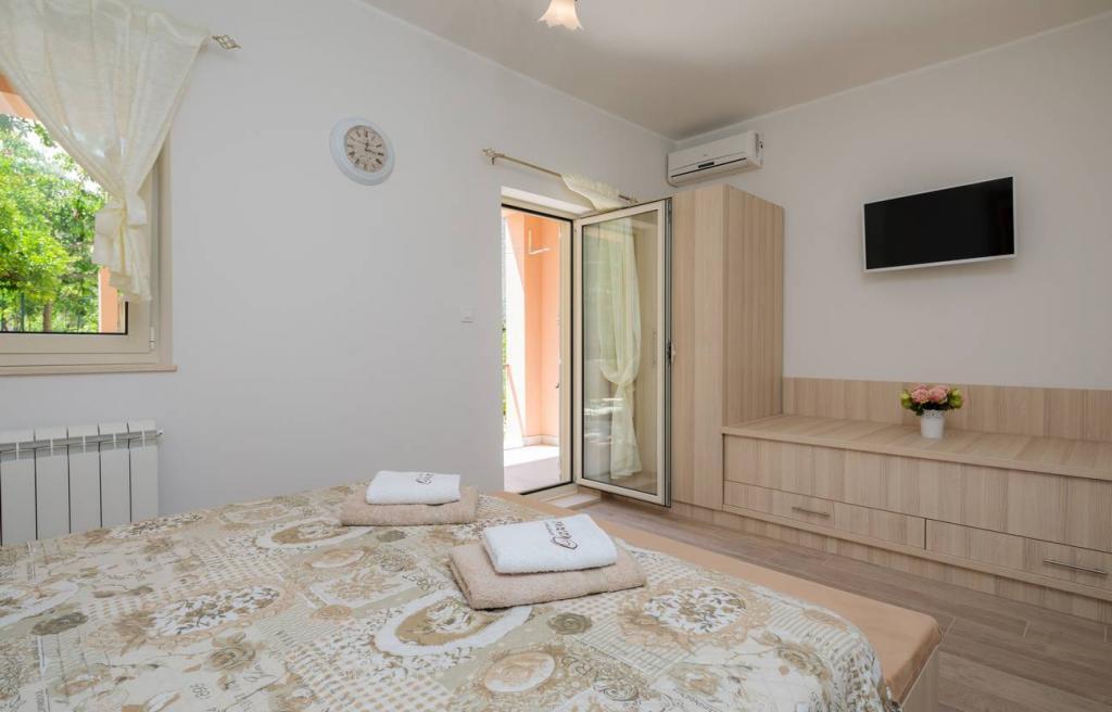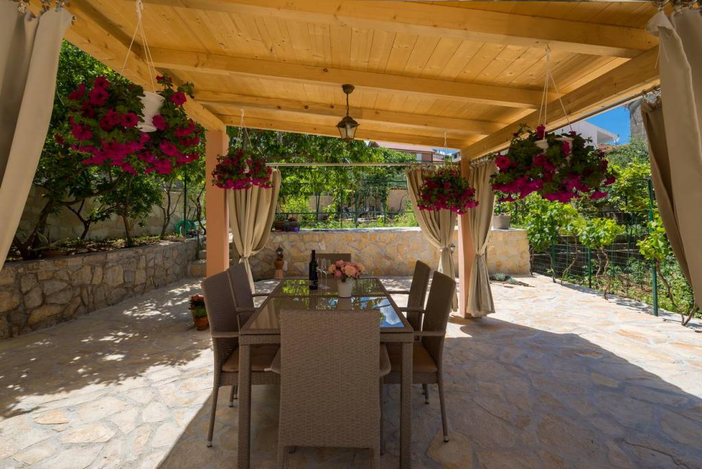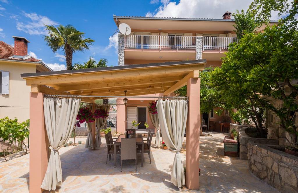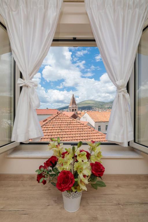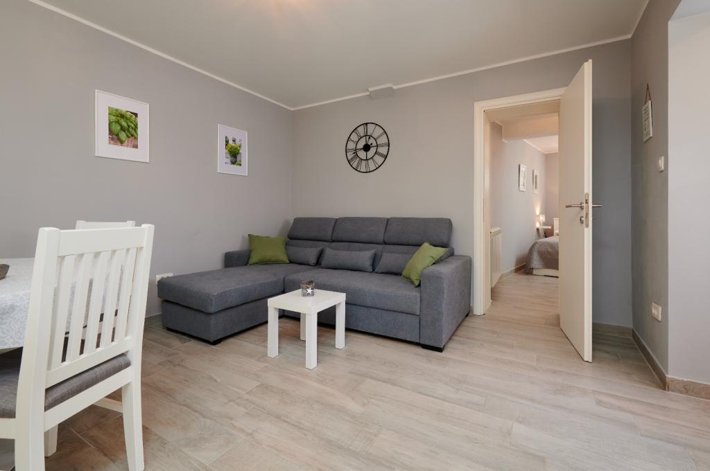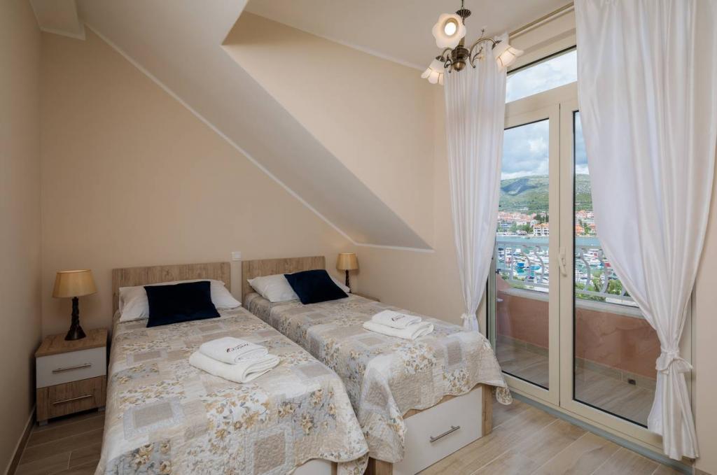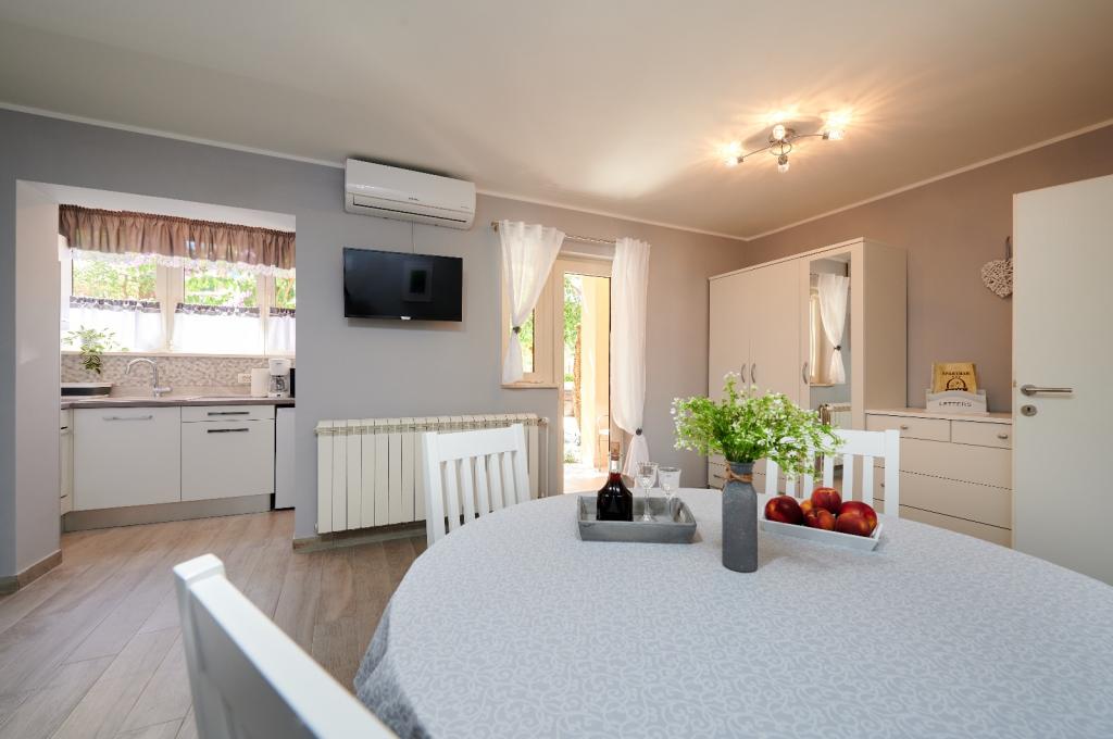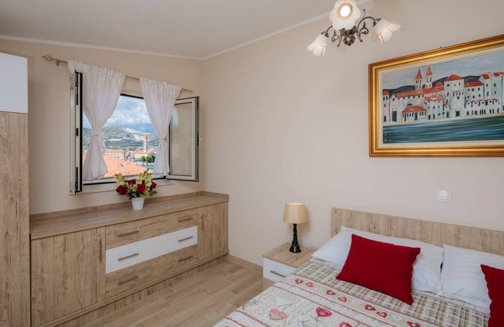 Les appartements Oaza sont situés sur le côté nord de la péninsule de Čiova, reliée par 3 ponts au centre historique de Trogir et au continent. Notre maison est à seulement 5 minutes à pied du cœur de Trogir. Le bon emplacement de l'appartement permet un accès rapide et facile au centre-ville ainsi qu'aux plages qui s'étendent sur toute la longueur de la péninsule. A proximité immédiate de nos appartements se trouvent des magasins, une boulangerie, une poste, une pharmacie, des restaurants proposant des spécialités dalmates, des cafés et une gare routière. Appartement 2+2 (pour max. 4 personnes) Il est situé au deuxième étage. L'appartement dispose d'une cuisine entièrement équipée reliée au salon, d'une salle de bain avec douche et de deux chambres doubles - une avec un lit double et l'autre avec deux lits simples. L'appartement dispose de 2 balcons, celui du sud avec vue sur la surface verte de la péninsule de Ciovo et le jardin, et celui du nord avec vue sur la mer, Trogir et la montagne Kozjak. Studio 3 (pour max. 3 personnes) Il est situé au rez-de-chaussée de notre maison familiale. L'appartement dispose d'une cuisine entièrement équipée et d'une salle de bain