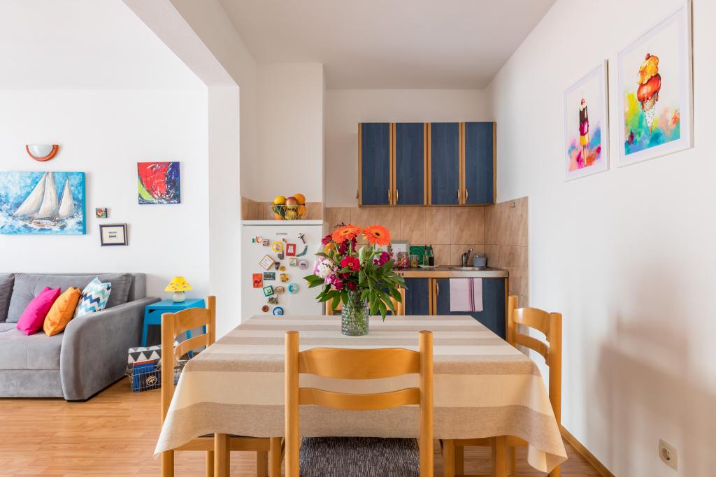 Sur cinq possibles, pour cet appartement et la famille Rogulj, nous sommes dix. C'est plus beau que sur les photos, car ils ne pouvaient pas correspondre aux détails et aux petites choses que cette famille a mis dans l'appartement afin de rendre l'expérience de plaisir et de repos aussi complète que possible. Nous les recommandons chaleureusement.