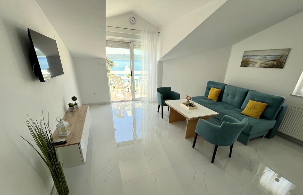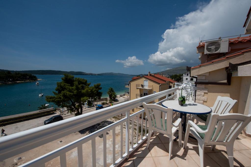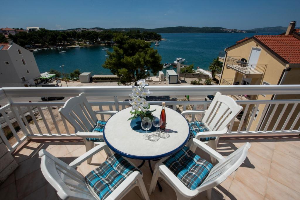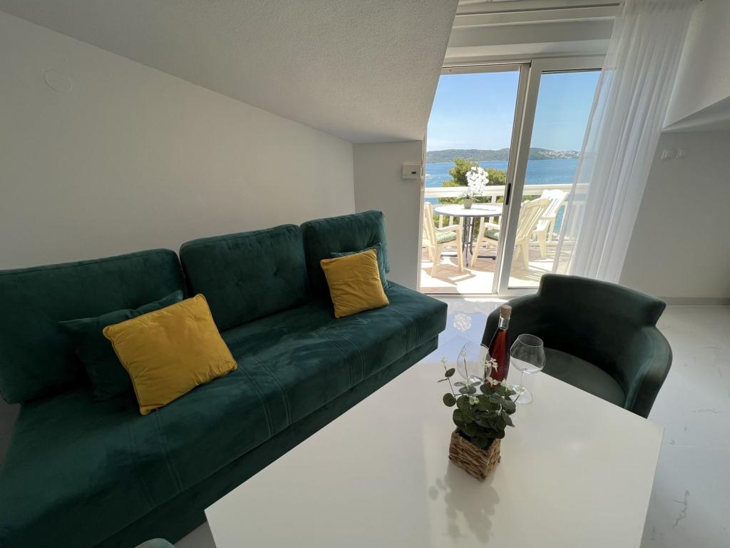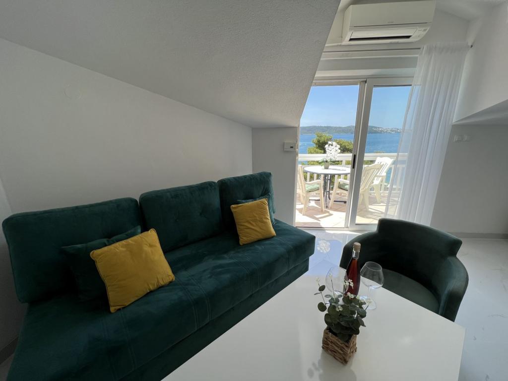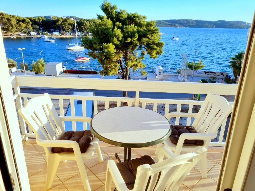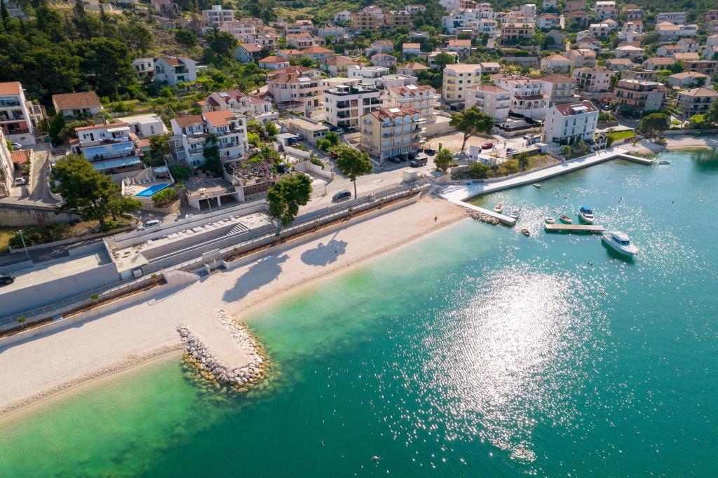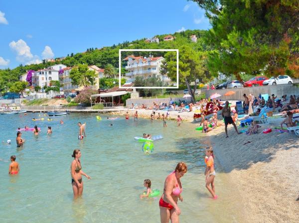 Propriétaires très gentils et sympathiques. L'appartement est agréable, propre, climatisé, avec une terrasse et une vue sur la mer. Le logement est situé juste à côté d'une très belle plage de galets et les courses sont juste à côté du logement. A 2-3 minutes de la boulangerie et du taxi qui va à Trogir. 15-20 minutes à pied du centre et de la plage de Copacabana. Merci.