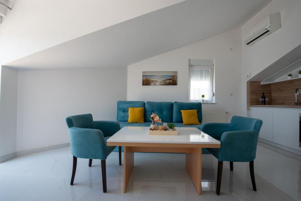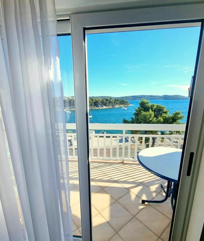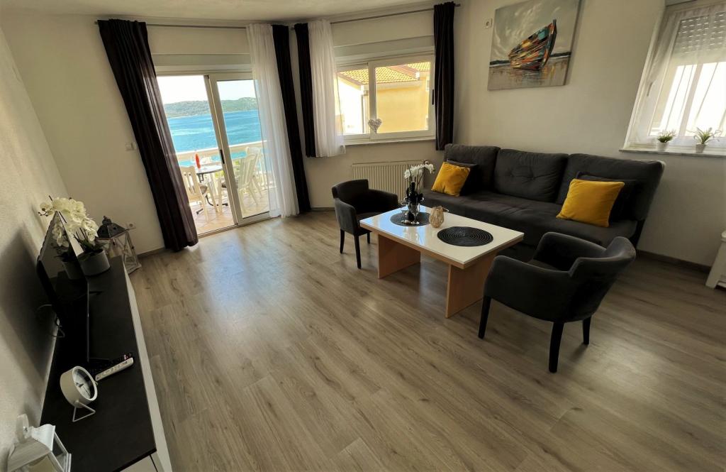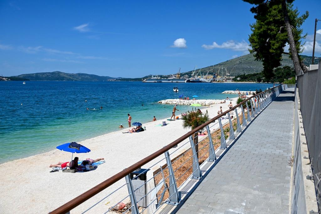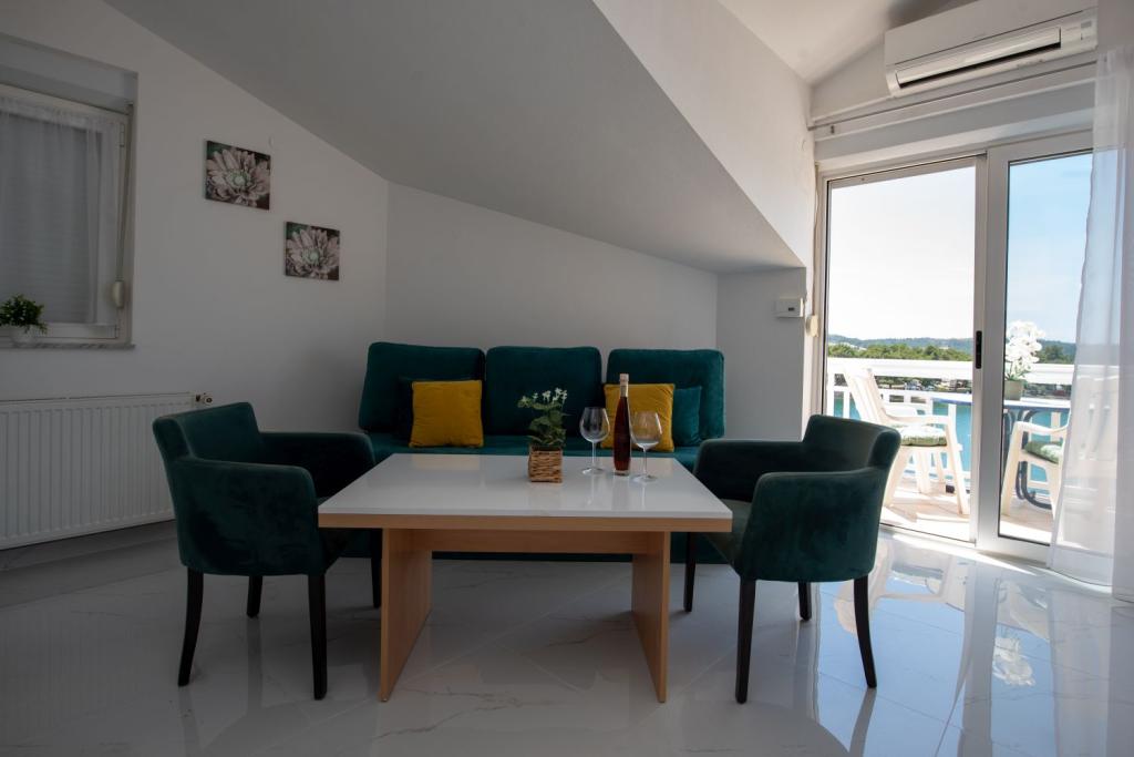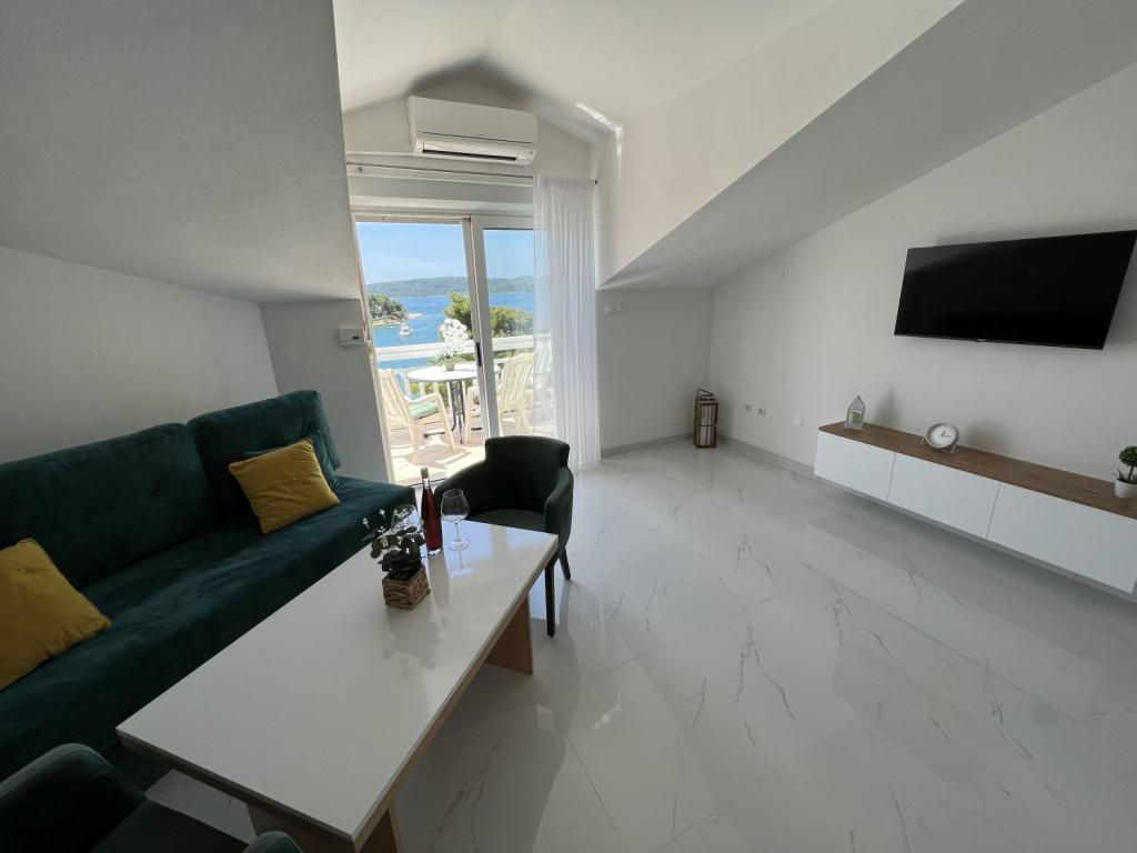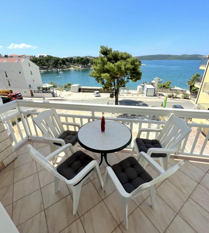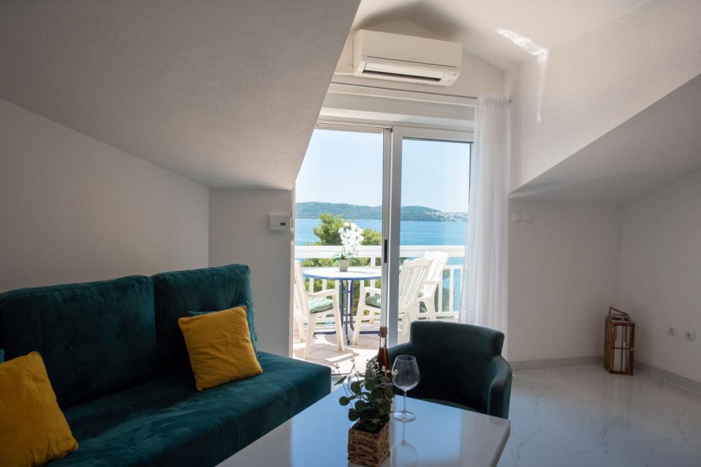 Propriétaires très gentils et sympathiques. L'appartement est agréable, propre, climatisé, avec une terrasse et une vue sur la mer. Le logement est situé juste à côté d'une très belle plage de galets et les courses sont juste à côté du logement. A 2-3 minutes de la boulangerie et du taxi qui va à Trogir. 15-20 minutes à pied du centre et de la plage de Copacabana. Merci.