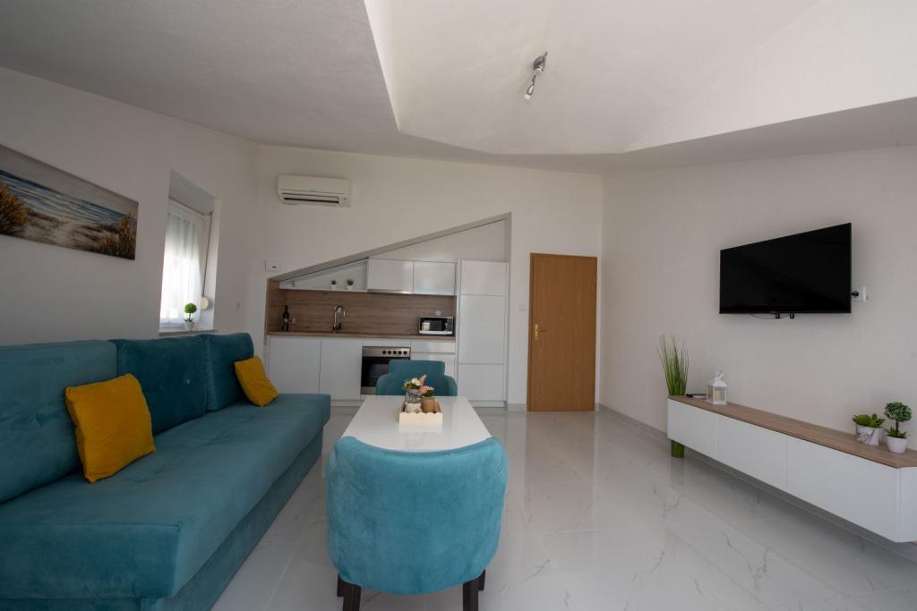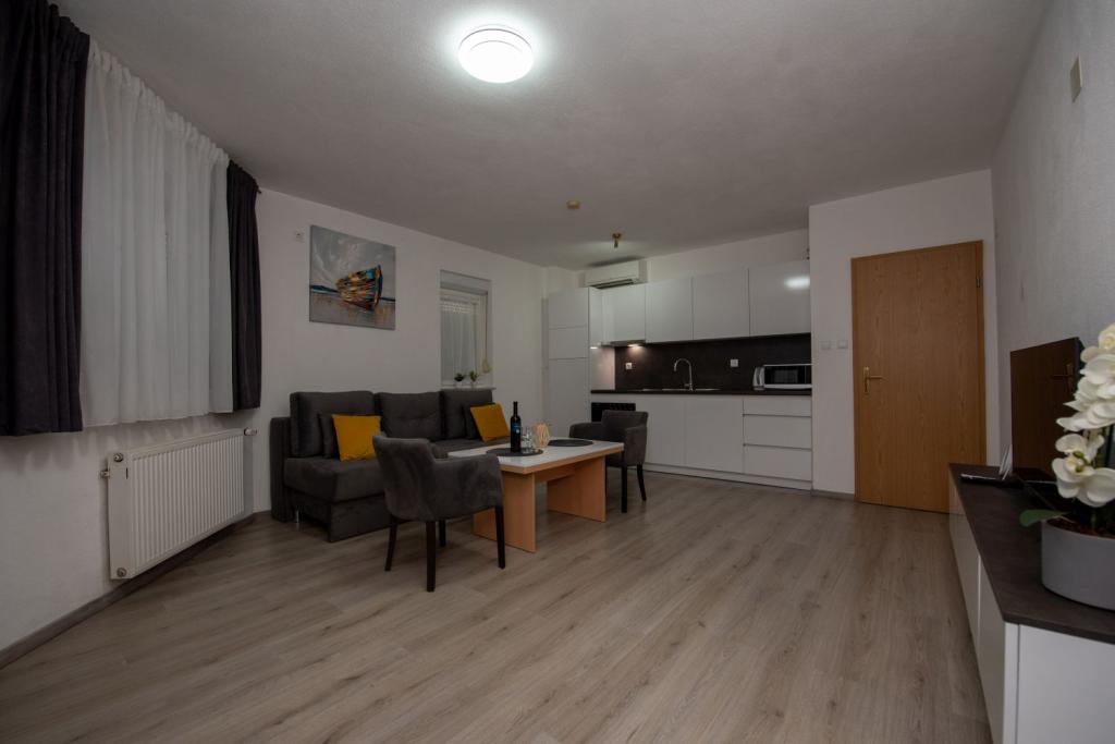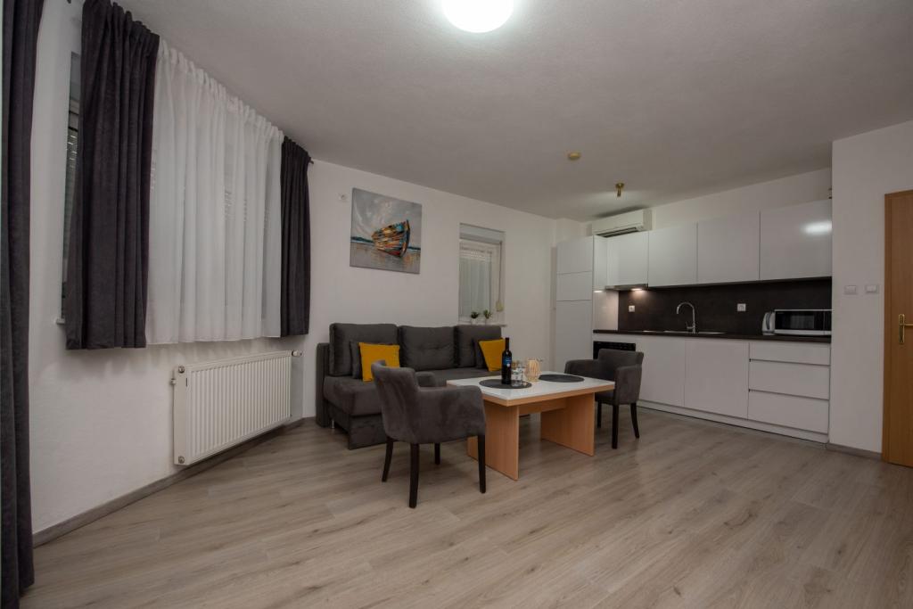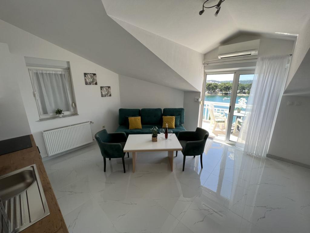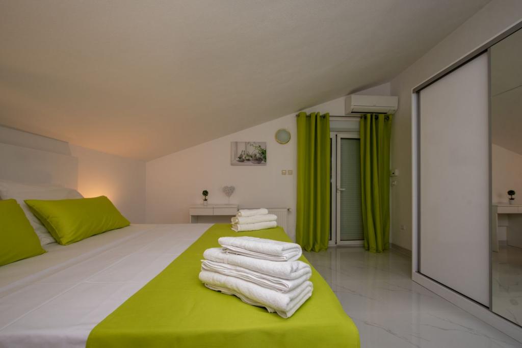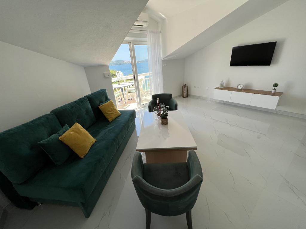 Nouveau bâtiment. Le lit était très bon, dans l'ensemble propre et agréable, l'hôte était très gentil. Achetez vraiment près de 30m. Peut-être seulement moins un peu d'une promenade vallonnée à Trogir, Town shortcut 1000m, très agréable. La région est également fantastique et la nuit car elle propose des repas et des boissons avec d'autres amis et des bars sur la plage.