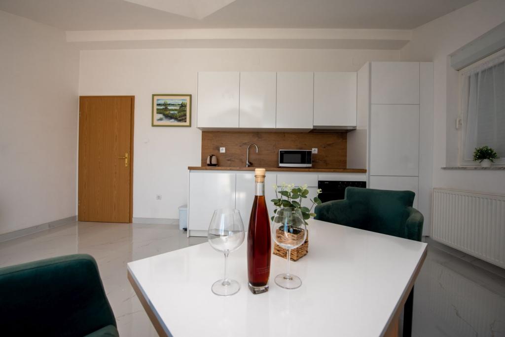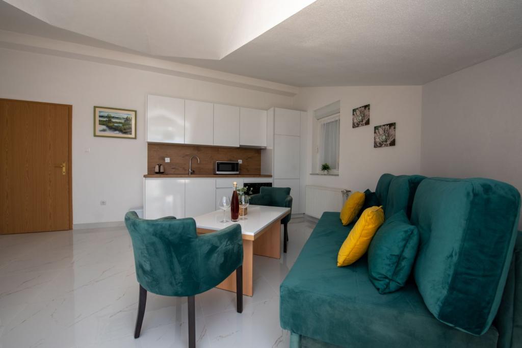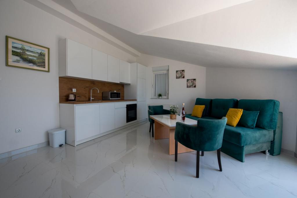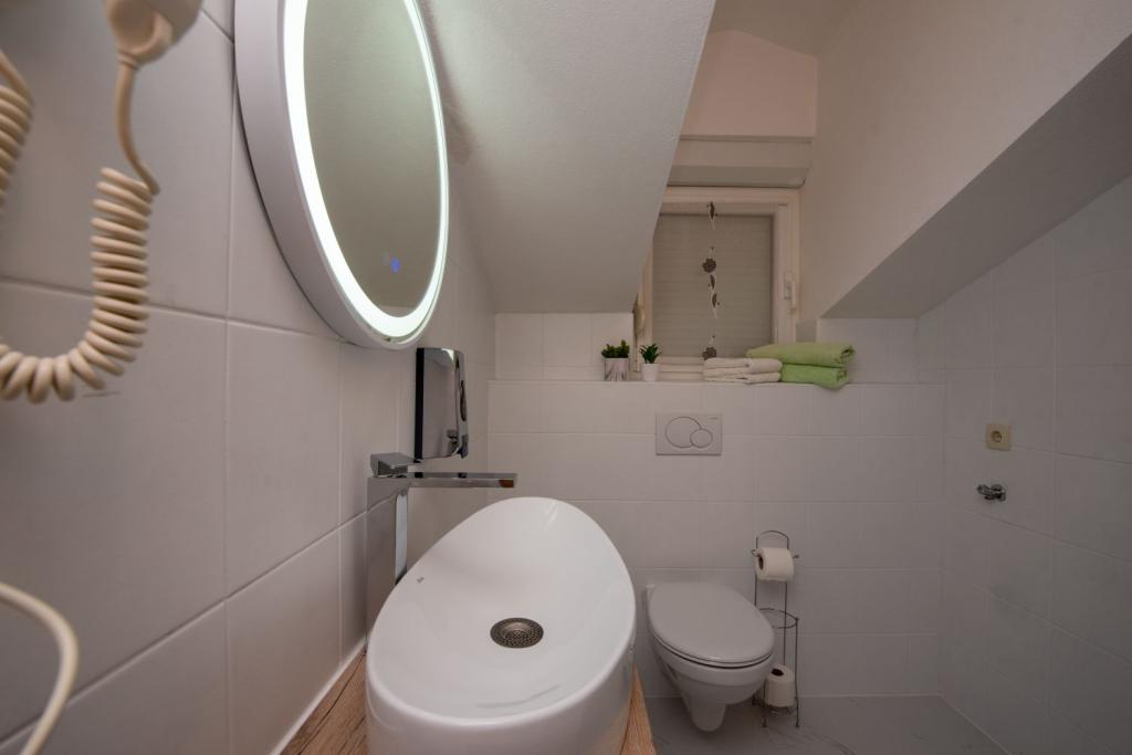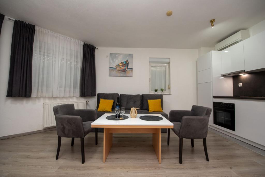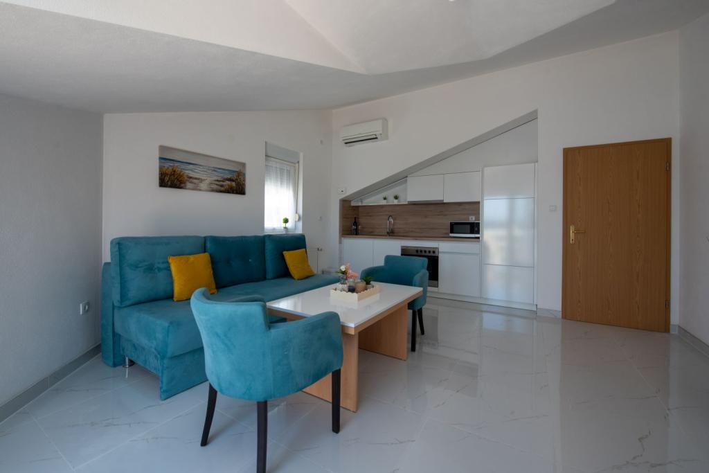 Nouveau bâtiment. Le lit était très bon, dans l'ensemble propre et agréable, l'hôte était très gentil. Achetez vraiment près de 30m. Peut-être seulement moins un peu d'une promenade vallonnée à Trogir, Town shortcut 1000m, très agréable. La région est également fantastique et la nuit car elle propose des repas et des boissons avec d'autres amis et des bars sur la plage.