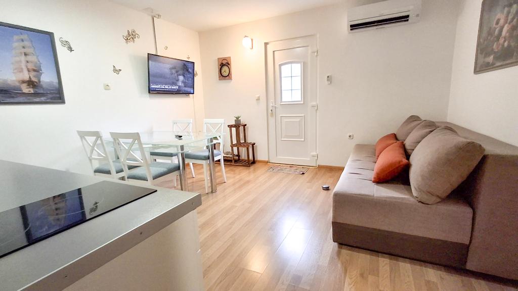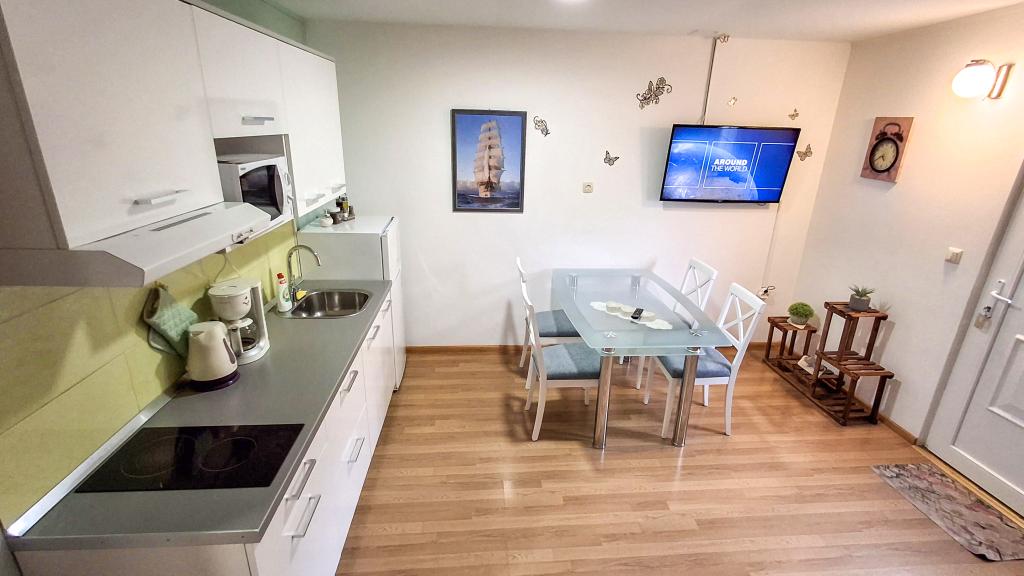 Les appartements Ugrina sont situés dans la belle ville méditerranéenne de Mastrinka, sur l'île de Ciovo. Il y a deux appartements à louer dans la maison, situés au même étage. Un appartement est composé d'une chambre et l'autre de deux chambres. Au total, 12 personnes peuvent séjourner. Il y a de la place pour trois voitures devant la maison. Les appartements sont entièrement équipés. L'appartement offre une vue directe sur la mer. Chaque appartement dispose d'une terrasse extérieure avec barbecue. La maison est bien reliée au continent. L'île de Ciovo est reliée au continent par deux ponts. Elle est reliée par un vieux pont à la ville de Trogir, inscrite sur la liste du patrimoine mondial de l'UNESCO. Il est relié au continent par un nouveau pont et constitue la route la plus proche de l'aéroport de Split. La ville de Split est à 25 kilomètres et le palais de Dioclétien à Split est inscrit sur la liste du patrimoine mondial de l'UNESCO. Les villes voisines sont Žedno, Arbanija et Okrug Gornji.