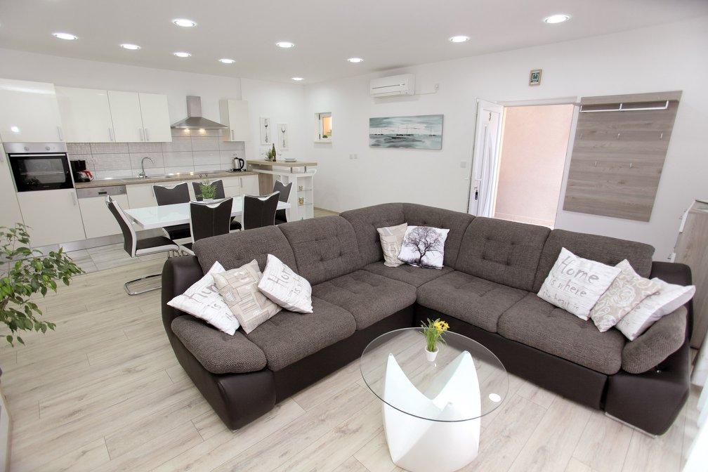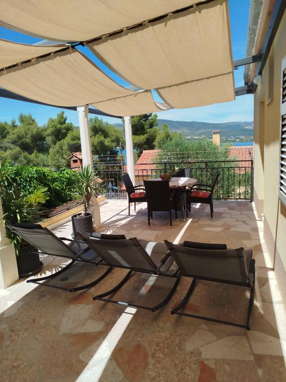 Appartement 2 + 1 grand - grand, très proche de la plage. L'inconvénient est le manque de douches à la plage, et très peu d'endroits où vous pouvez manger. Dans les restaurants, le paiement en espèces uniquement. 2 km de Trogir, où il y a tout ce dont vous avez besoin. Je recommande si vous êtes à la recherche de la paix.