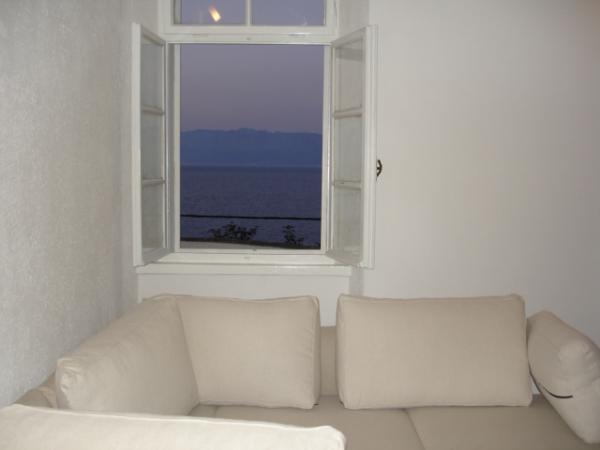 Appartement récemment entièrement rénové équipé de climatisation, TV, cuisine équipée avec four, réfrigérateur, congélateur, hotte et tout le nécessaire pour préparer les repas. Il y a une place de parking sous la maison et la plage est juste en dessous de la route étroite. La plage de galets de la ville est à 100 mètres. L'appartement donne sur une terrasse en retrait, qui assure l'intimité des hôtes et est destinée uniquement aux hôtes de l'appartement. La terrasse offre une belle vue sur la mer. Le prix comprend la taxe de séjour, le wi-fi, la climatisation et le parking. .