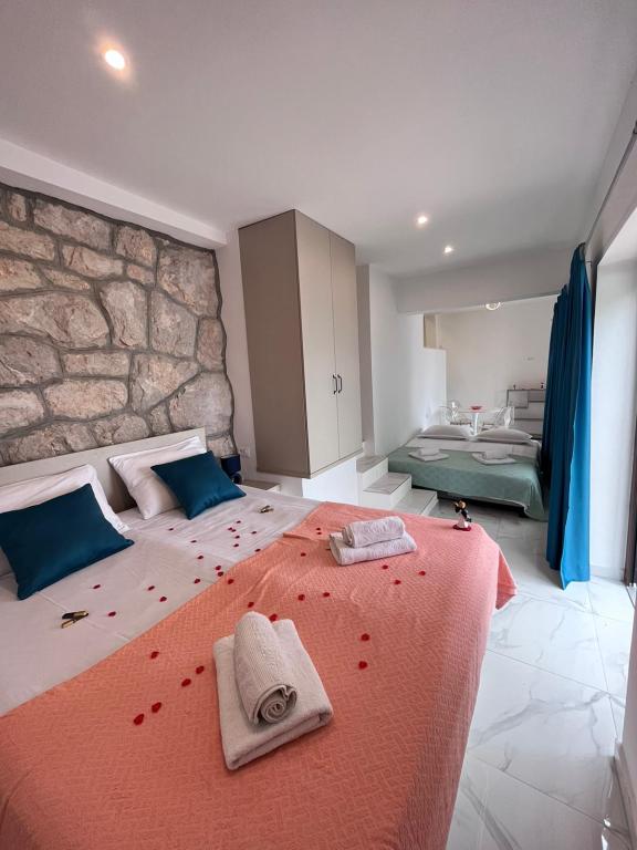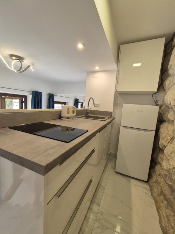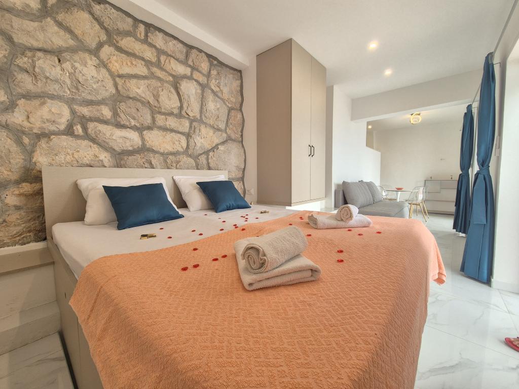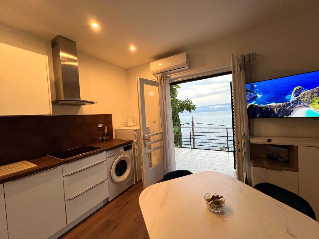 Bienvenue dans notre villa, nichée au cœur d'une nature sereine et magnifique, juste au-dessus de la mer scintillante, à deux pas de la plage. La Villa Montana offre une expérience extraordinaire dans un cadre magnifique et une atmosphère relaxante. Le studio au premier étage est unique, alliant design moderne et pierre locale. Il est sur deux niveaux, avec vue dégagée sur la mer et une spacieuse terrasse. Idéal pour les couples. L'appartement au deuxième étage comprend deux chambres, une salle de bain, une cuisine et un salon modernes, ainsi qu'une terrasse privée. Il peut accueillir jusqu'à 4 personnes. Au troisième étage, deux appartements sont souvent loués ensemble. Le premier, avec balcons et vue magnifique, s'étend sur 90 m² et peut accueillir confortablement 8 personnes. Il comprend un salon, trois chambres (3+3+2), deux salles de bain et une cuisine moderne entièrement équipée. Le deuxième appartement pour 4 personnes comprend deux chambres, deux salles de bain, une cuisine moderne et un salon. Depuis sa spacieuse terrasse, vous profiterez d'une vue imprenable sur le panorama enchanteur.