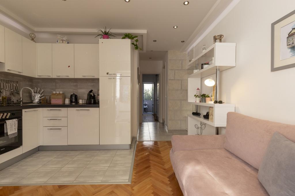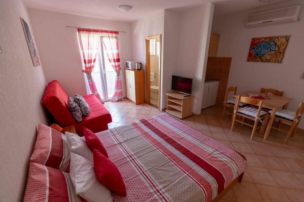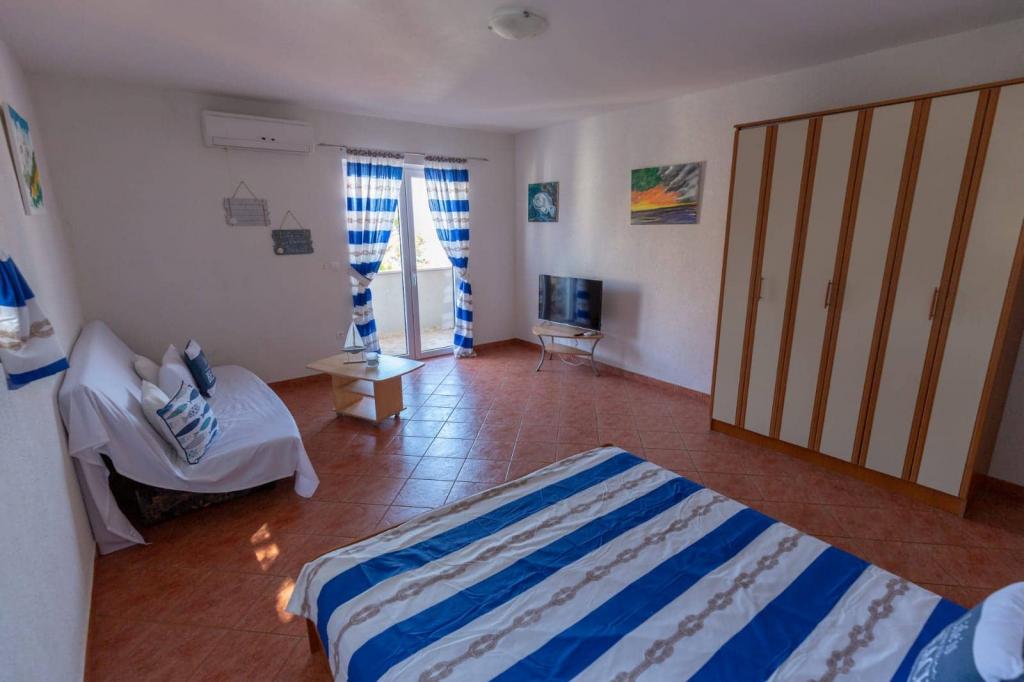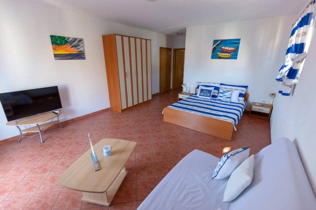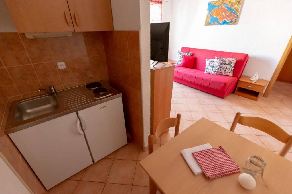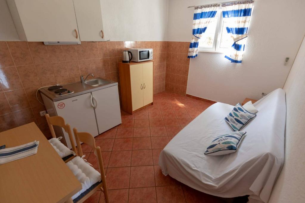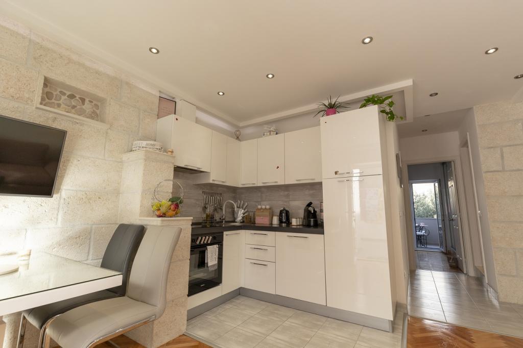 Les appartements sont situés à 30 mètres de la mer, près de l'appartement il y a des restaurants, des bars, un supermarché et d'autres installations. Avec un supplément de 6 euros par personne et par nuit, nous proposons le petit-déjeuner dans le bâtiment à côté de la plage. Idéal pour des vacances sans voiture. Ressentez les charmes des perles de la Dalmatie, détendez-vous sur les plages qui s'étendent sur 3 km avec le reflet de la mer cristalline
