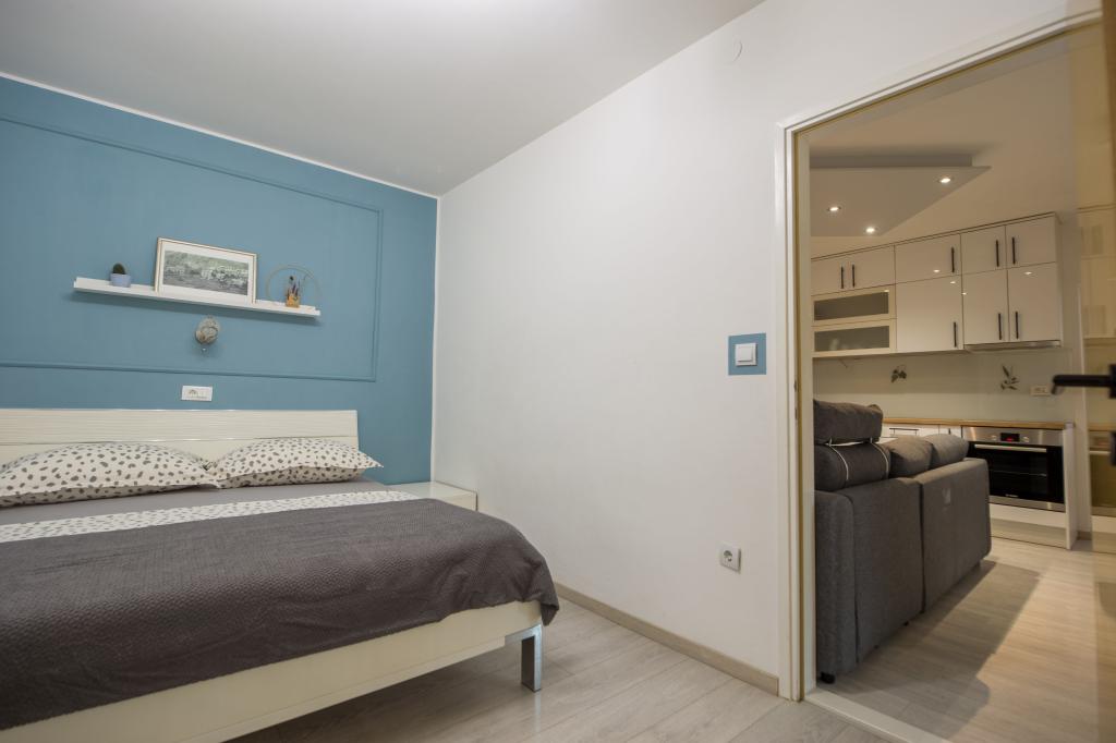Excellentes conditions, appartements modernes, propres et en bon état. Équipé de tout ce dont vous avez besoin et plus encore. Nous sommes déjà allés dans plusieurs appartements de M. Iwo et chacun d'eux a l'air aussi beau en direct que sur les photos. Vitlić est toujours chaleureux et convivial, ce qui rend le séjour encore plus agréable. Pour les bains de soleil, l'accès à la plage prend au maximum 5 minutes. Il y a des douches, des vestiaires et un arbre qui pousse à côté, permettant un repos agréable, par exemple avec un livre à l'ombre. Le long de la plage, il y a une promenade avec des pubs, des restaurants de restauration rapide, des cafés et même une salle de jeux - quelque chose pour tout le monde. Nous le recommandons vivement, même si je pense que le fait même que je sois revenu ici et que mes parents et amis y vont dans une semaine montre qu'il vaut vraiment la peine de choisir cet endroit pour se détendre. Merci et meilleures salutations de Lublin