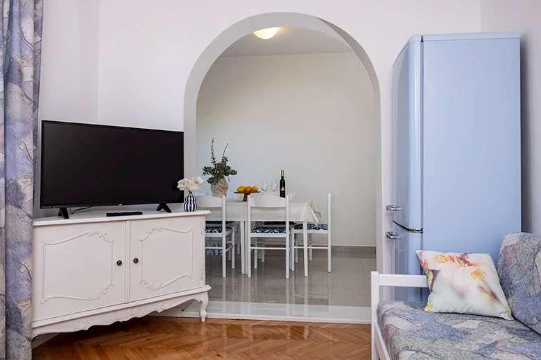 Les appartements IRENA sont des appartements entièrement équipés de façon moderne. Ils sont situés à seulement vingt mètres de la mer. La plage est formée de petits galets et est ornée de pins qui créent une ombre agréable. Le parking est en face de la maison et il y a une possibilité d'utiliser le garage. Des hôtes satisfaits et un grand nombre d'anciens hôtes sont un gage de qualité offert par les hôtes.