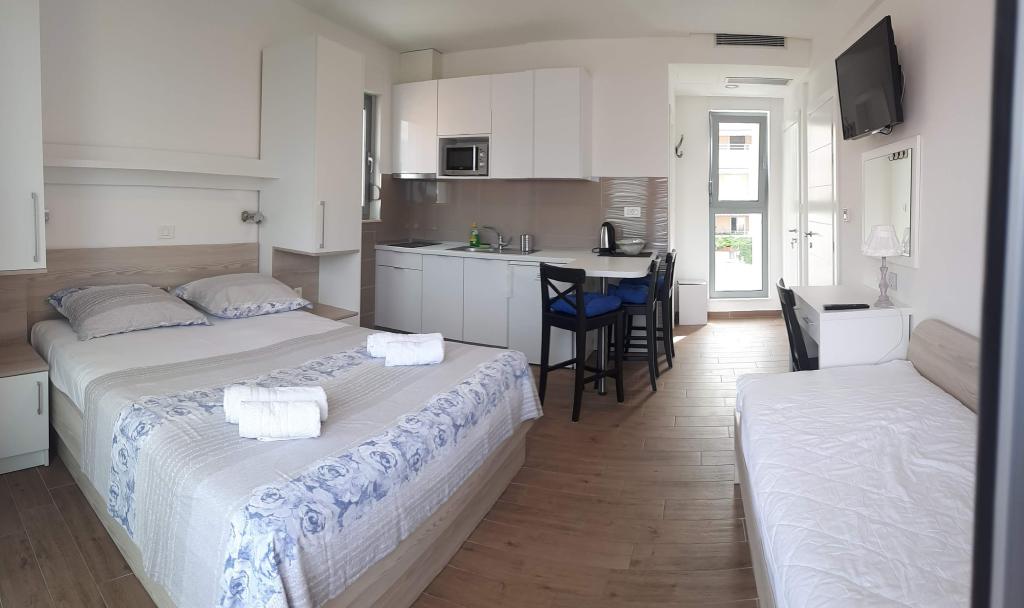 Tous les appartements offrent une vue magnifique sur la mer et la possibilité de prendre ses repas sur la terrasse.