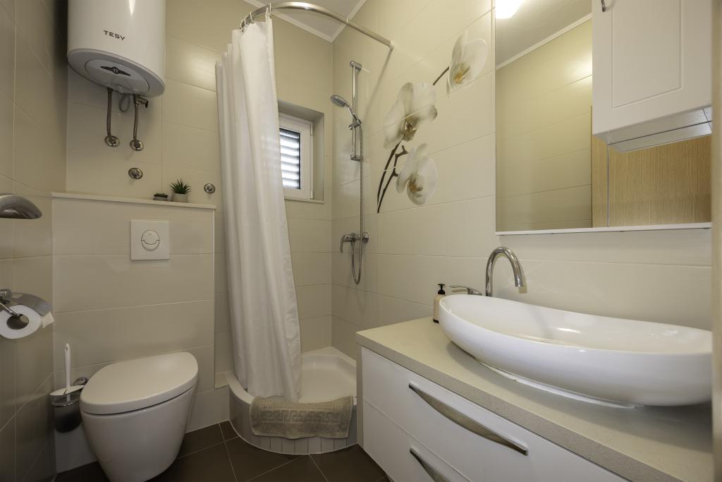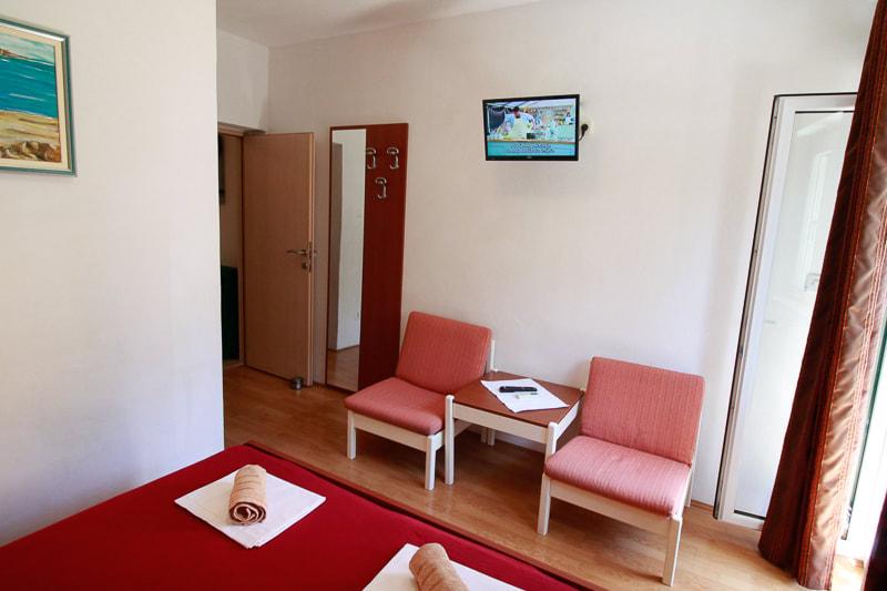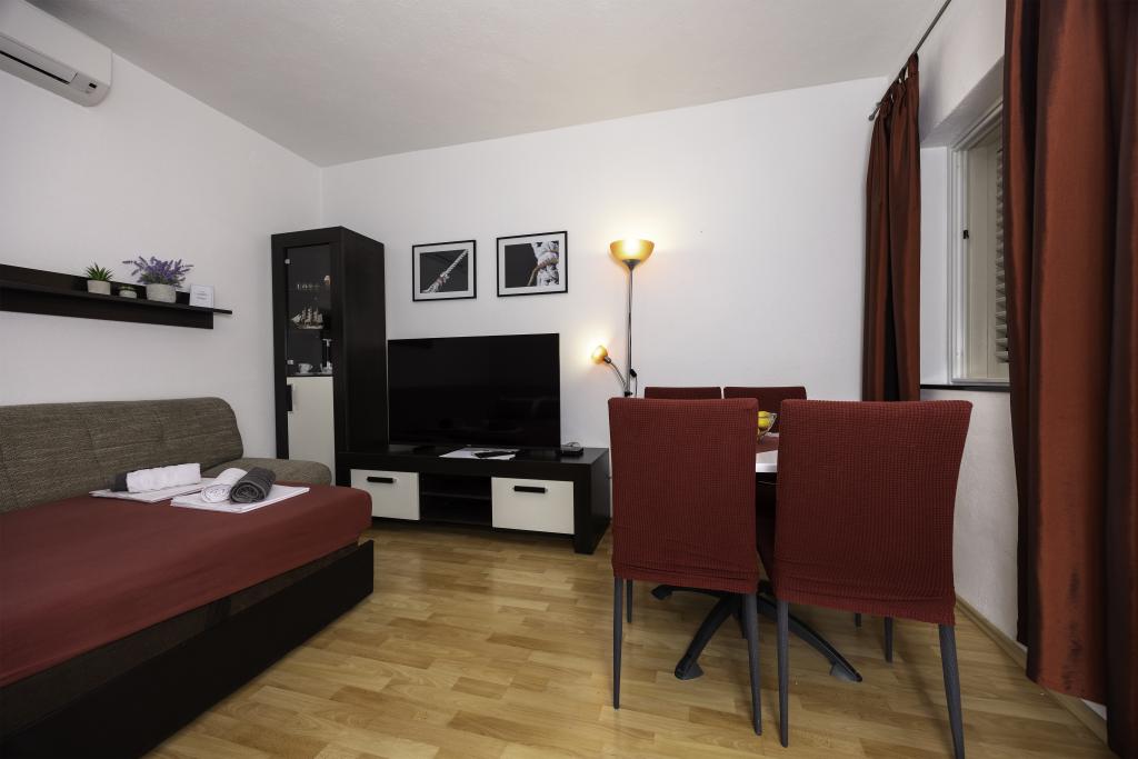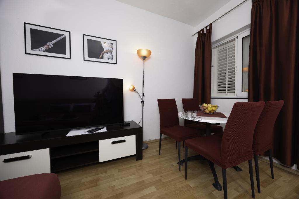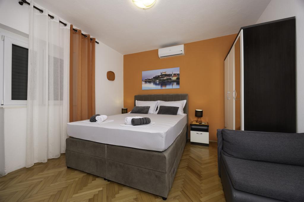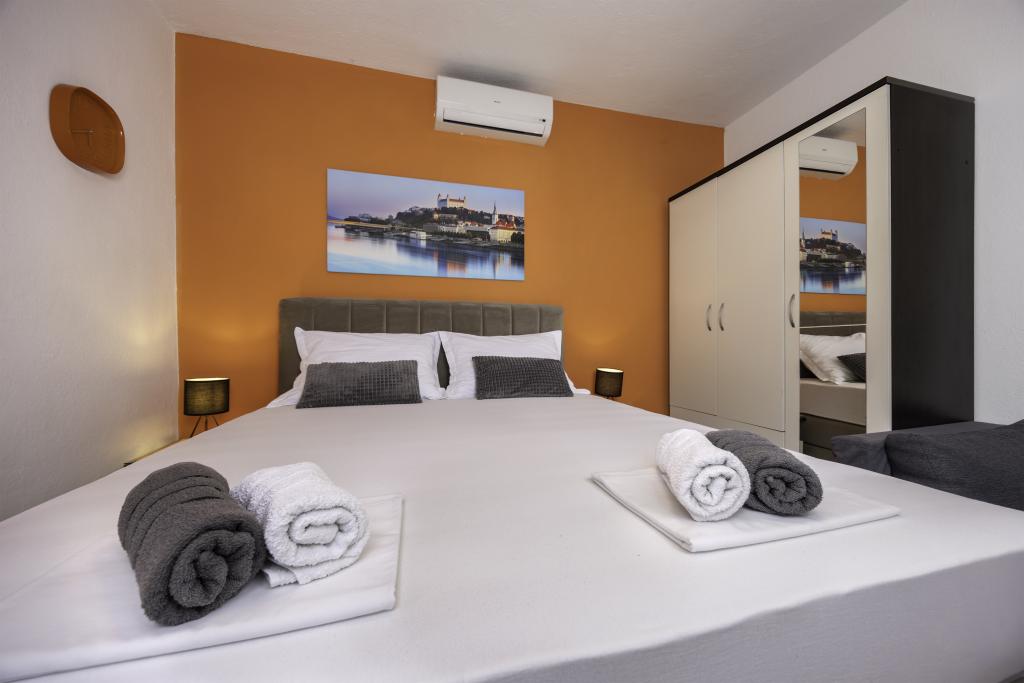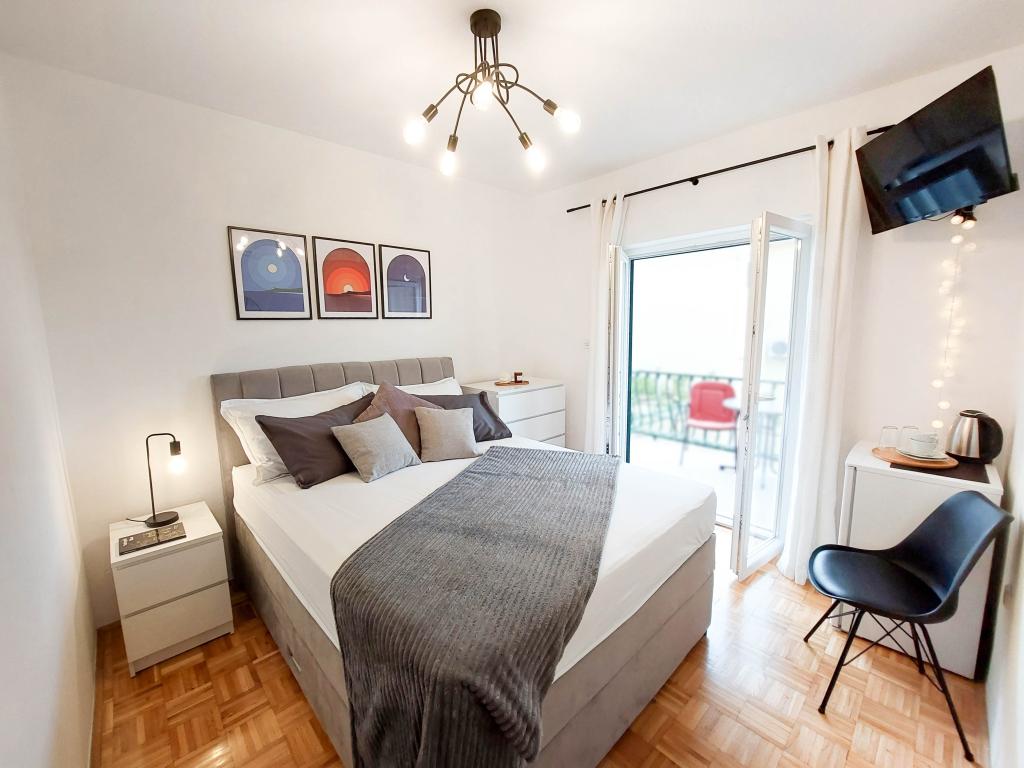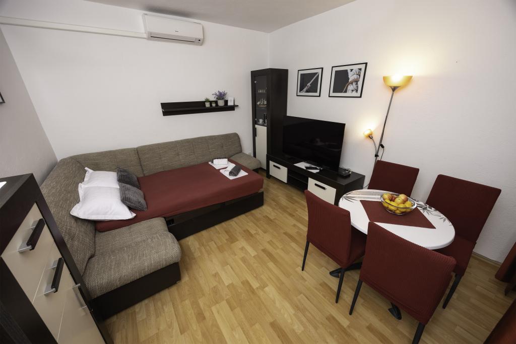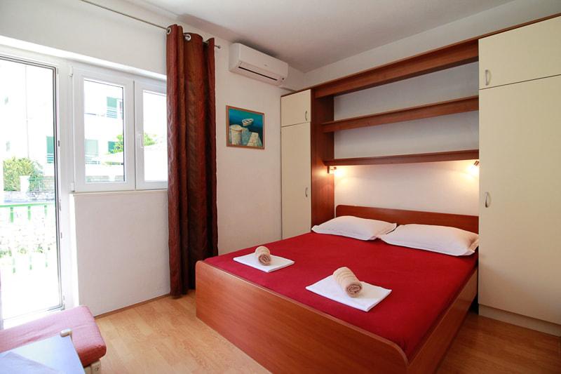 L'appartement est situé près de la plage, ca. 1-2 minutes à pied. Air conditionné dans les deux chambres avec une télécommande séparée, d'un balcon à Biokovo, parking superbe. Bosses étaient très polis et agréables. Appartement peut recommander.