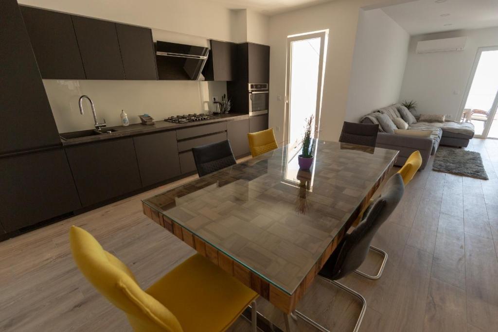 Appartement entièrement équipé de façon moderne avec une grande terrasse, de belles vues. L'établissement est situé à 30 mètres de la mer et à 5 minutes du centre. En tant que jeunes hôtes, nous sommes toujours à votre service pour passer vos vacances le plus joliment possible et vous ramener de bons souvenirs.