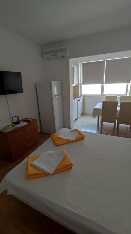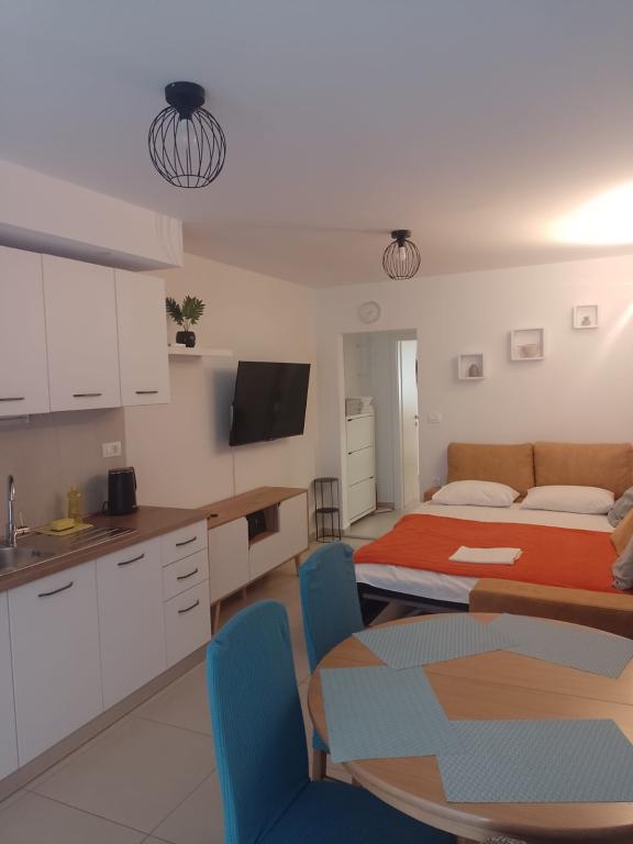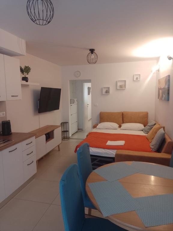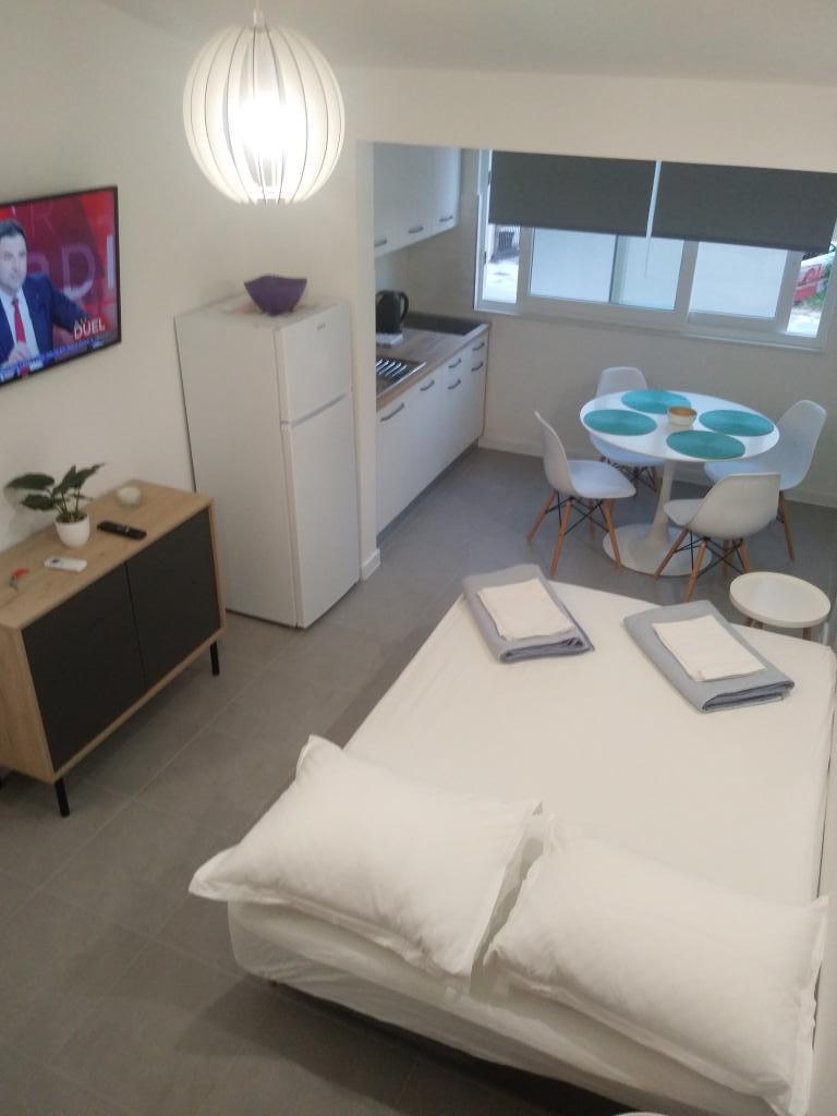 J'ai passé 9 jours merveilleux dans cet appartement avec mon mari et mes deux enfants. Appartement moderne, agréable et bien équipé. Une belle vue sur les montagnes depuis le balcon et la cuisine. Forte climatisation dans la chambre et le salon. Serviettes propres, que le propriétaire a changées après quelques jours. Propriétaire très sympathique qui parle bien anglais. Si nous n'avions besoin que de quelque chose, il suffisait de demander au propriétaire. Parking à l'arrière de la maison. Sur le parking, les voitures étaient arrêtées les unes après les autres, donc si vous vouliez aller quelque part en voiture, vous deviez changer de place, mais ce n'était pas un problème non plus. La mer à portée de main. N'importe où près de la boulangerie et du magasin. Beaucoup de restaurants. L'emplacement dans un endroit calme et paisible. Au revoir, nous avons eu notre propre vin rouge - très bon. Je recommande sincèrement cet appartement