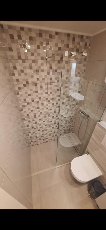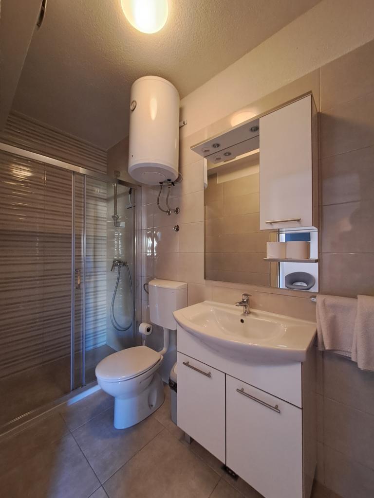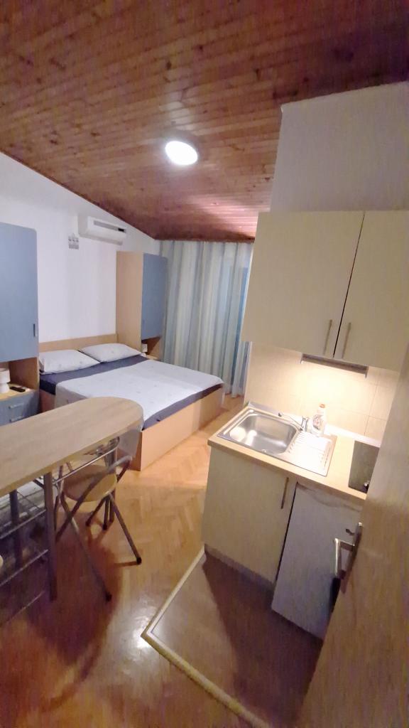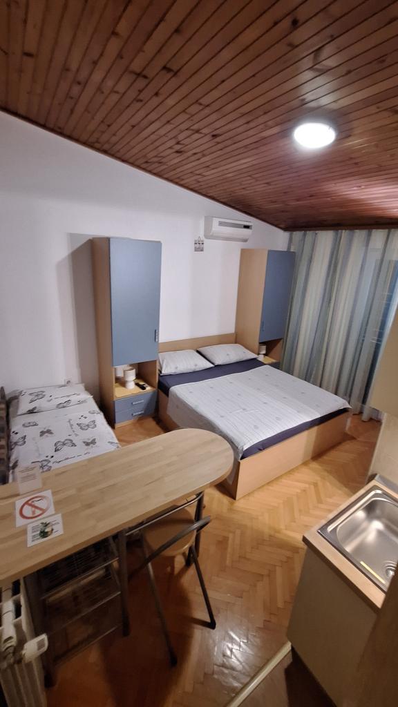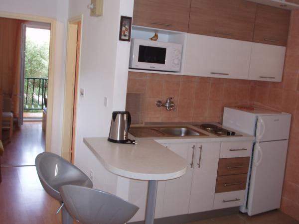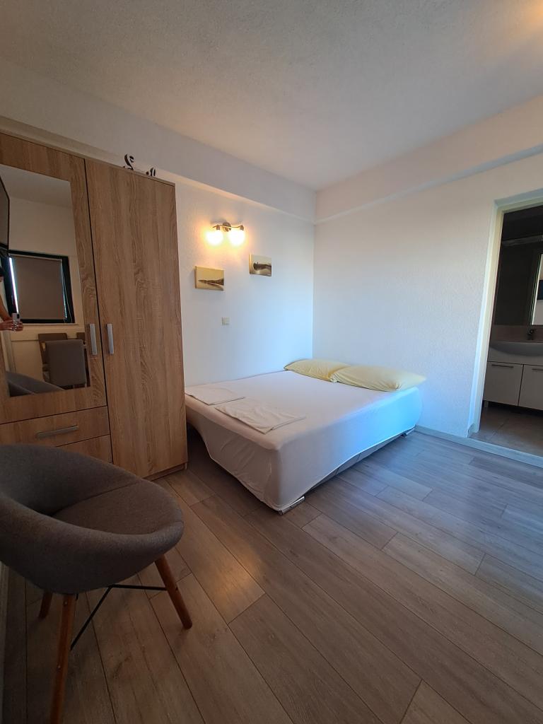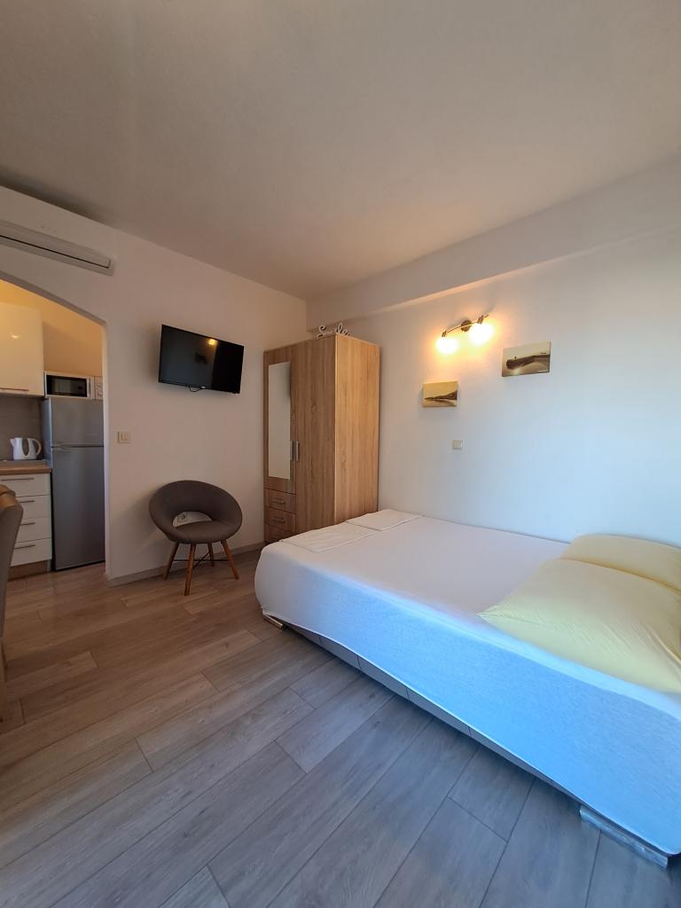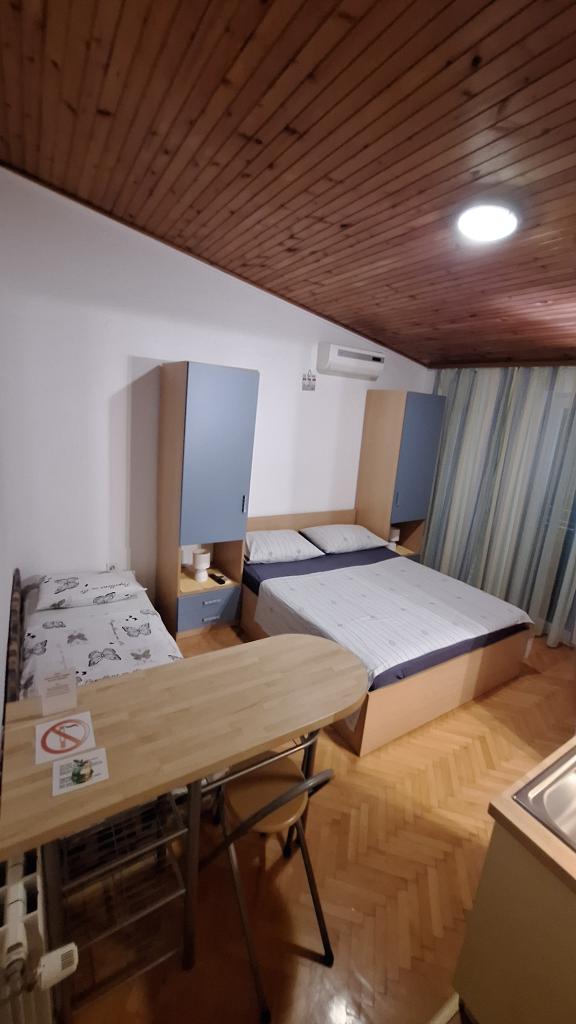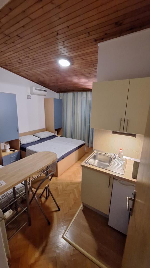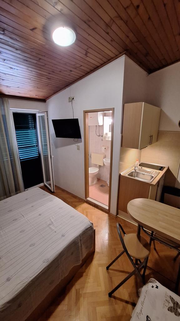 Taxe de sejour est inclus dans le prix.Chambre confortablement meublée, salle de bain moderne, petite kitchenette, climatisation fonctionnelle, connexion WiFi, agréable salon sur la terrasse, maison calme. Très belle famille :) Logement idéal pour des vacances paisibles au bord de la mer, à la plage à environ 5 minutes, plage de galets, mer propre, longue promenade.