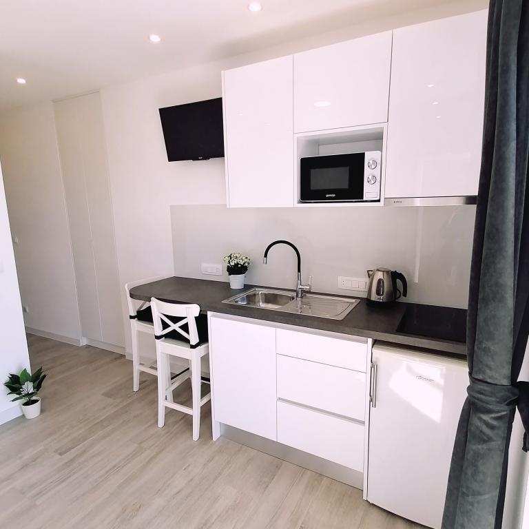 Le logement était excellent, le studio est comme sur les photos, tout est neuf et fait sur mesure. L'appartement est propre et bien rangé, le balcon est grand, avec une chaise longue. L'appartement a tout ce dont vous avez besoin pour un séjour. Les hôtes sont discrets, mais toujours disponibles. Tout à louer !