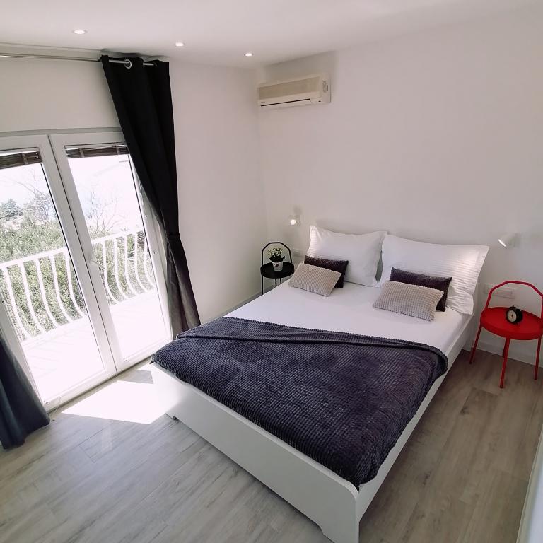 Nous sommes à seulement 40 m de la plage. Depuis le balcon de nos appartements, vous profiterez d'une vue magnifique sur la mer et les îles environnantes. Les appartements ont été récemment rénovés. Un parking est disponible dans la cour de la maison. Nos hôtes, très attentionnés, sont toujours à votre disposition.