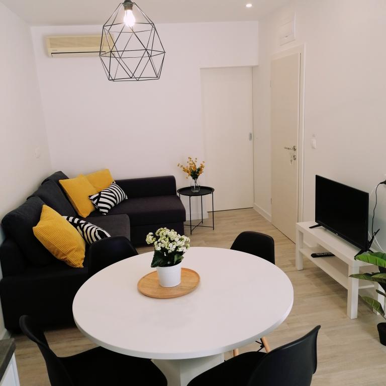 La première chose que j'ai remarquée tout de suite, c'est que l'appartement est EXTRÊMEMENT propre. J'ai souvent voyagé pour affaires et j'ai séjourné dans des hôtels de l'UE et de la Grande-Bretagne avec **** où les chambres sont moins propres. Le mobilier est neuf et fonctionnel et exactement comme sur les photos. Le lit dans la chambre est extrêmement confortable et la chambre fait face à l'arrière de la maison, de sorte qu'aucun bruit n'y pénètre. La cabine de douche est neuve et entièrement fonctionnelle. Dans la cuisine, il y a un grand réfrigérateur et un lave-vaisselle. Ce qui n'est pas clairement visible sur les photos, c'est la taille de la terrasse, qui doit être supérieure à 20m2, fermée sur trois côtés et ouverte sur la mer et offrant une vue magnifique. Un gros plus pour moi est que le parking est couvert et éclairé la nuit. La construction dont il est recouvert est très solide, ce dont nous étions convaincus car une nuit, il y a eu une tempête et la voiture était en sécurité sous cet auvent (elle est également recouverte derrière vers le bâtiment suivant). Le propriétaire de l'appartement est très gentil, tout comme le couple de personnes âgées. Elle s'est mise en quatre pour répondre à toutes les exigences spécifiques et nous a tout expliqué. Elle nous a également apporté du vin et des raisins locaux.