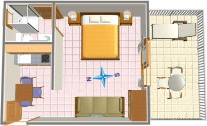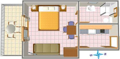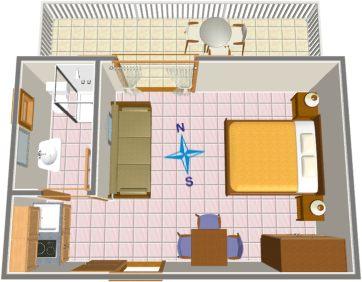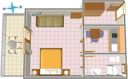 Appartement pour deux personnes avec deux lits supplémentaires (22 m2)