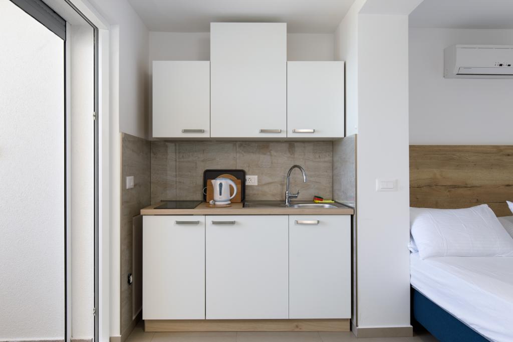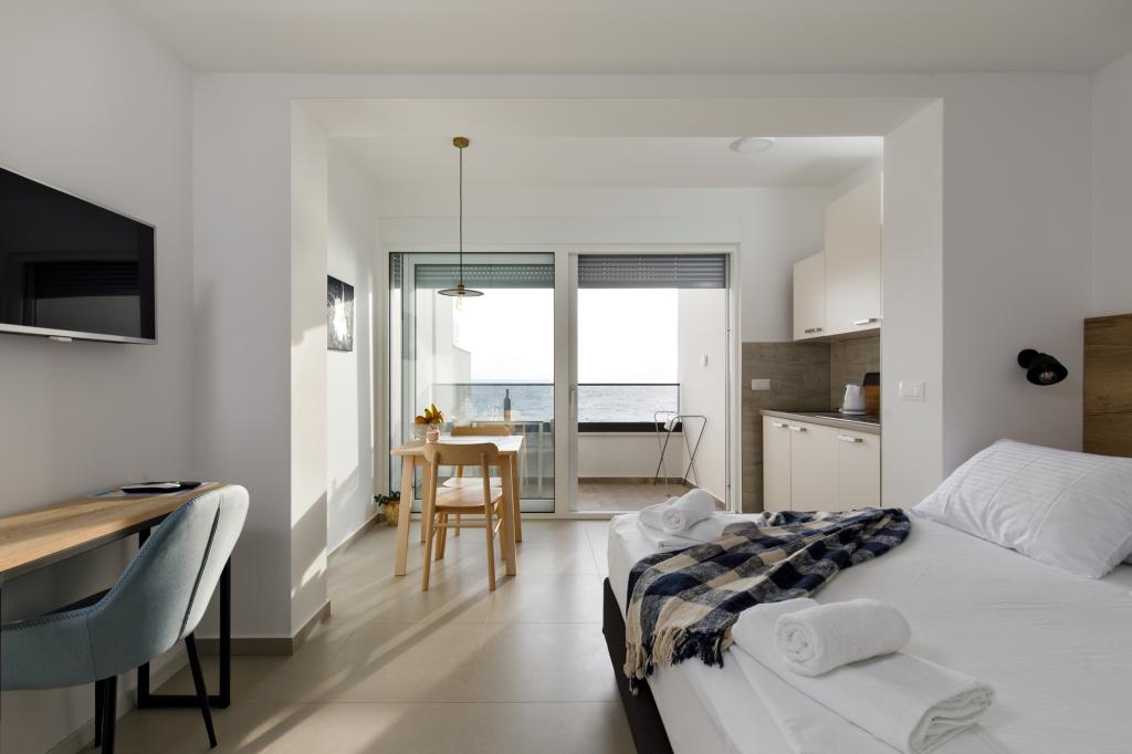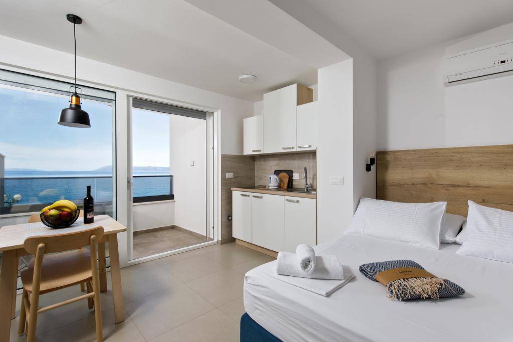 Résidence Visković (ex Apartments Mileva) Après une reconstruction complète et une mise à niveau du bâtiment, il continue à fonctionner. L'installation est située sur la plage. Nous louons des appartements depuis 1967. Pour tous les clients, un parking est prévu dans le garage ou dans le parking extérieur. Le parking est inclus dans le prix. Apport possible de petits animaux domestiques
