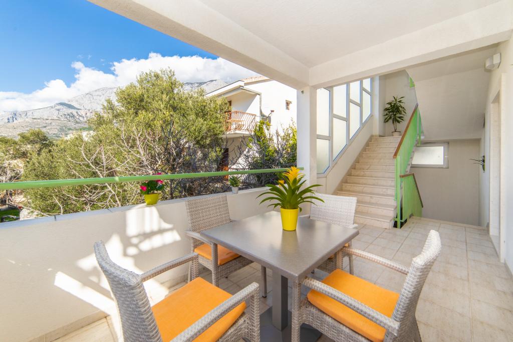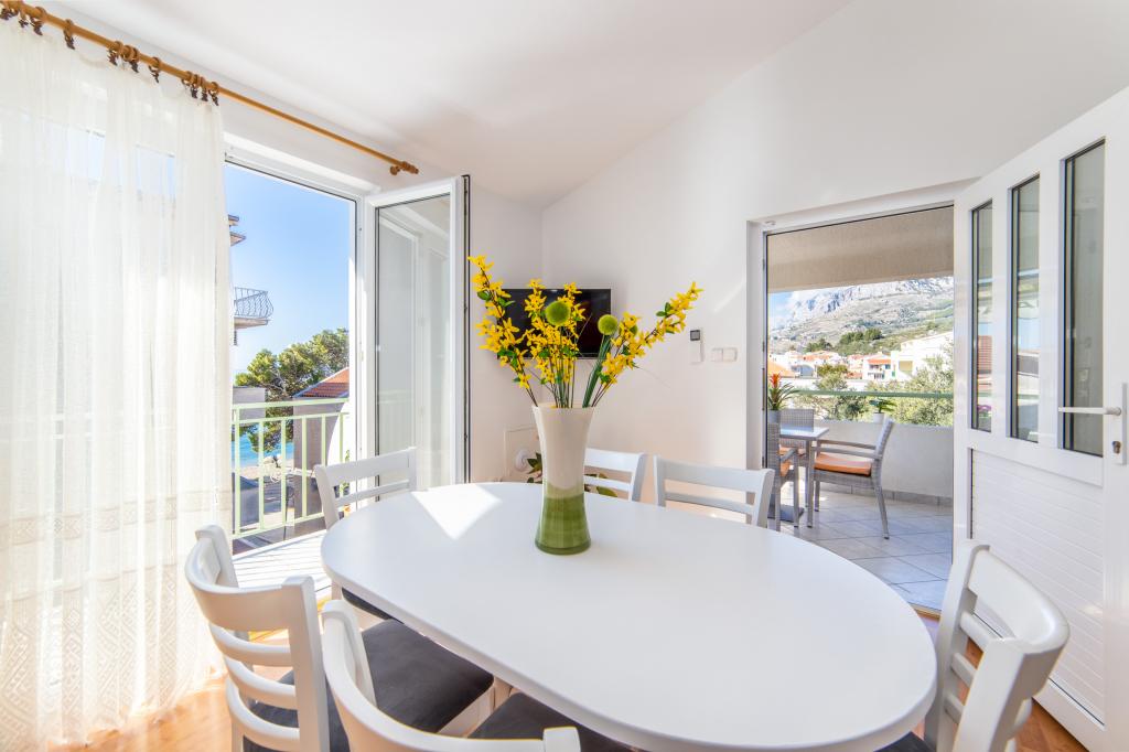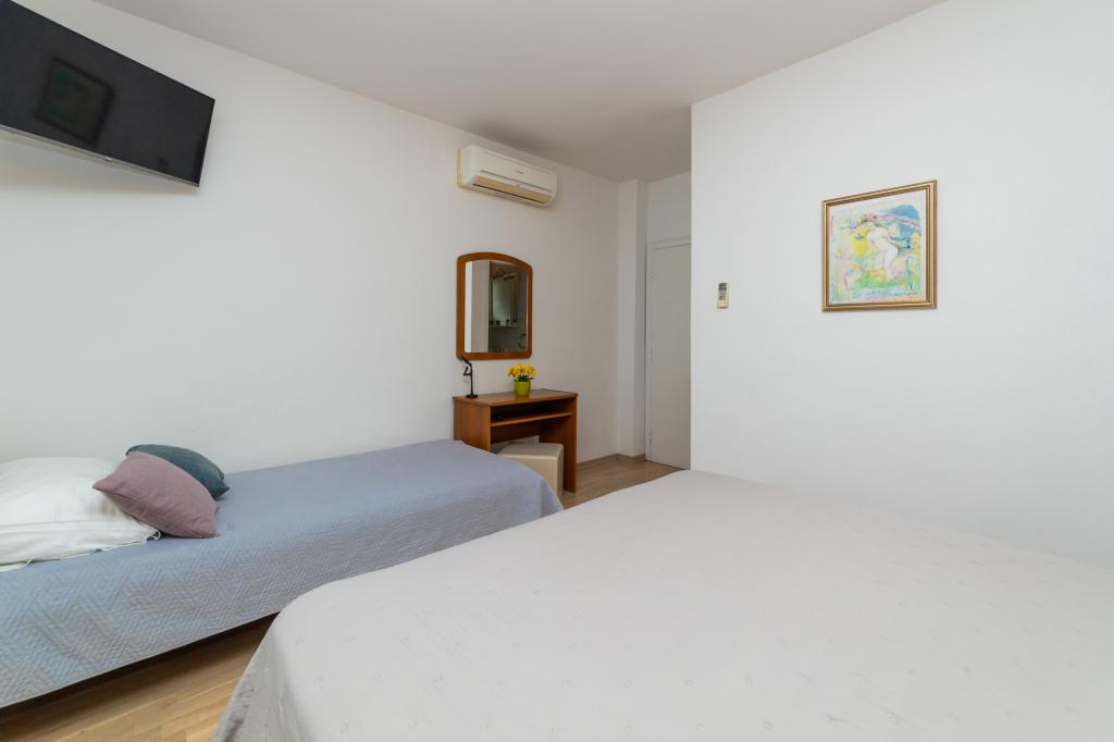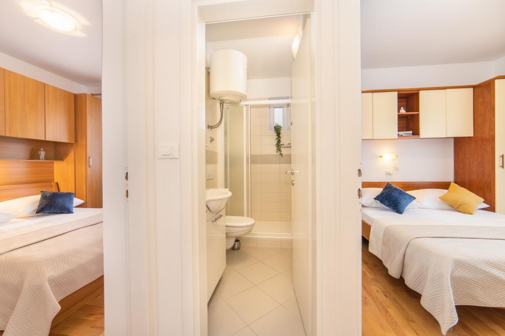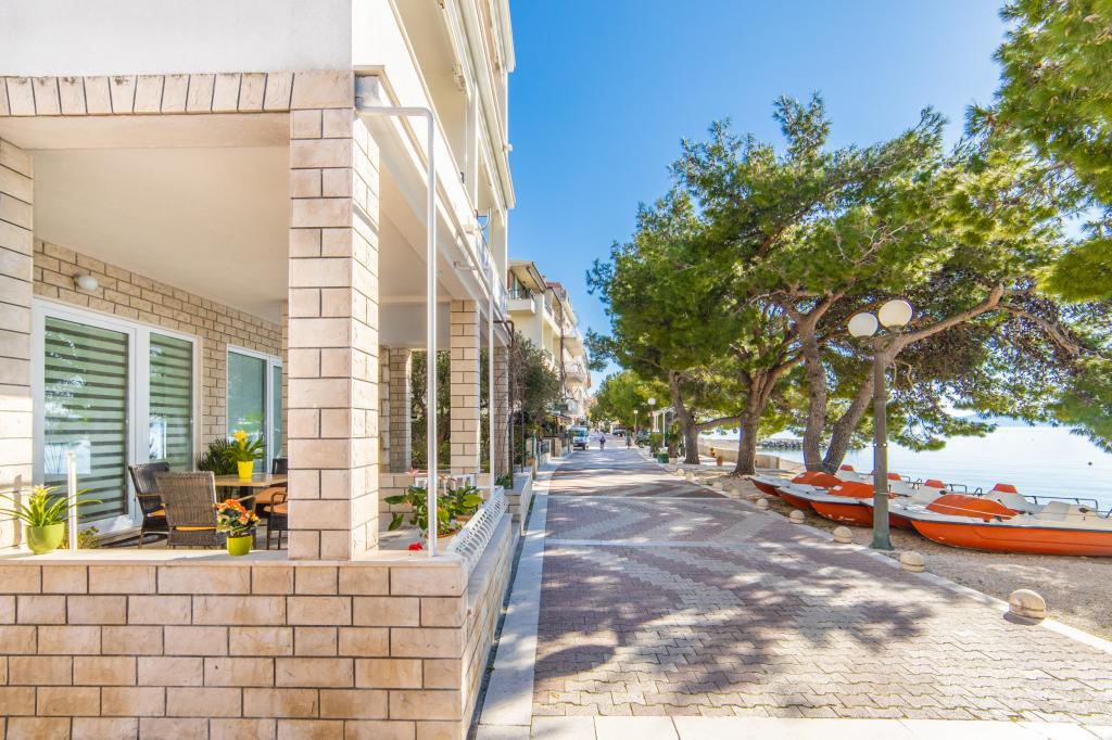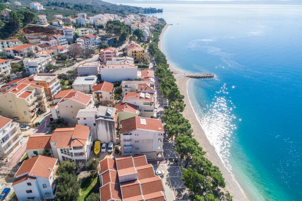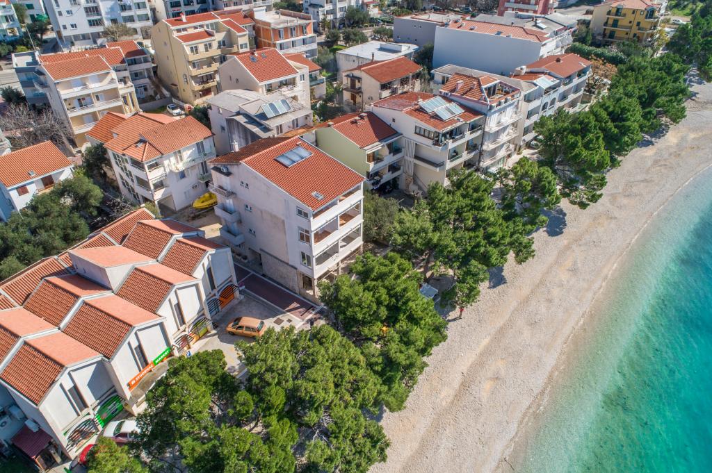 Nous avons des appartements dans deux bâtiments. Nous sommes situés à 100 m du centre de Tučepi, port de plaisance, pharmacie et médecin. Dans les environs de 20 à 50 m, il y a de nombreux restaurants, boulangeries, pâtisseries, cafés et un supermarché. Le stationnement est dans la cour entre les deux bâtiments. La maison 1 est la première rangée au bord de la mer et dispose de deux appartements 2+1 avec vue sur la mer et de grandes terrasses et de deux chambres avec salles de bains, réfrigérateurs et balcons pour deux personnes plus un lit supplémentaire. Ils sont situés au premier étage du bâtiment. Toutes les chambres et appartements sont climatisés. La maison 2 est située derrière la maison 1 et à 20 m de la mer. Il y a de grands appartements pour 4-5 personnes avec des entrées séparées, deux chambres séparées, une salle de bain et un salon récemment rénovés. Toutes les chambres des appartements sont climatisées et disposent de la télévision par satellite et d'Internet. Devant eux se trouve une grande terrasse avec vue sur la mer. Les appartements sont spacieux et mesurent entre 50 et 60 m2.