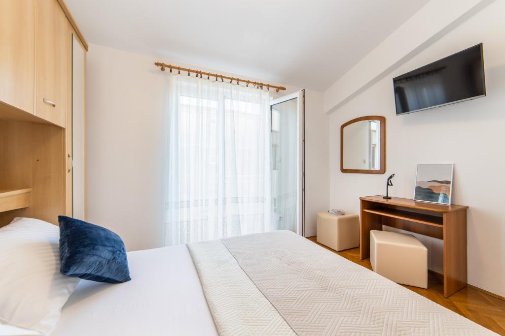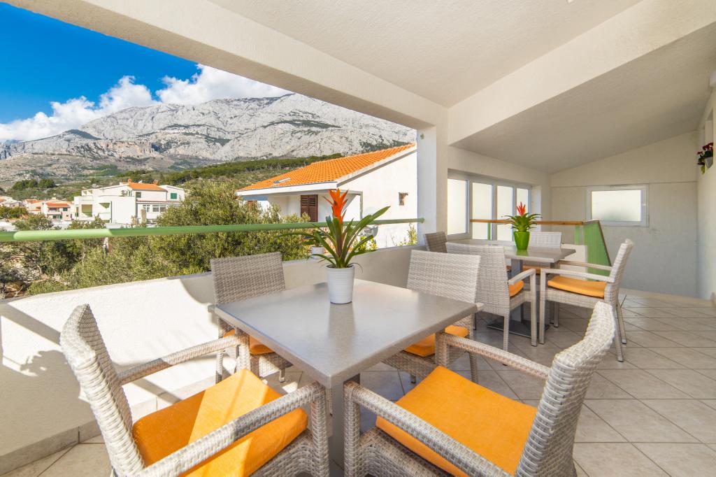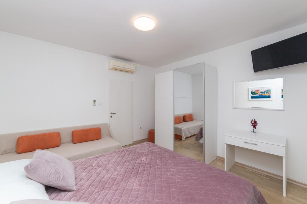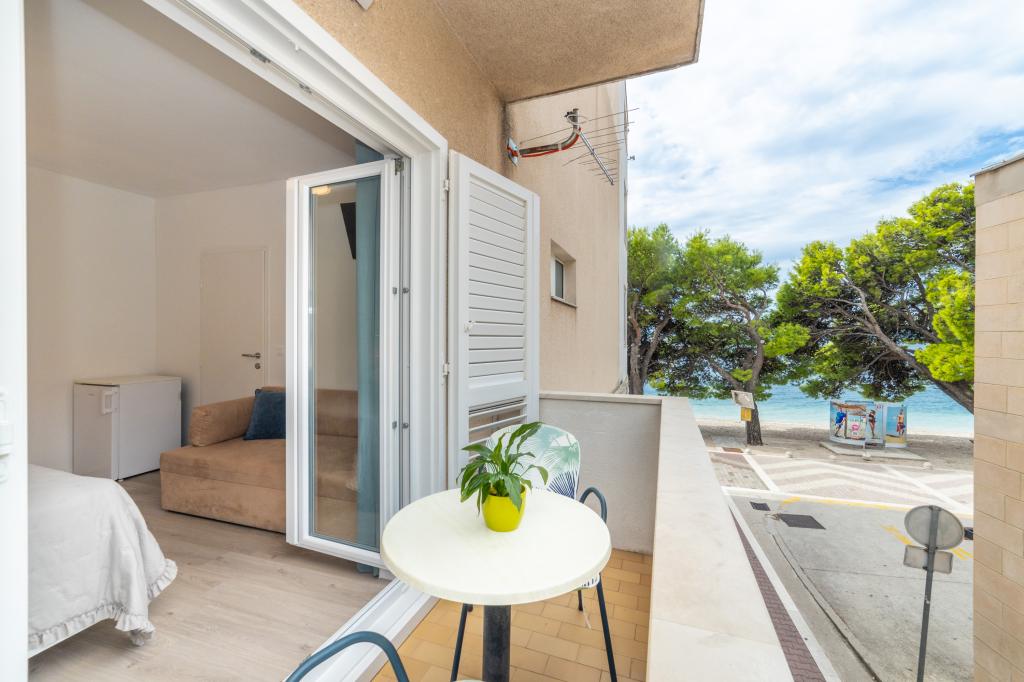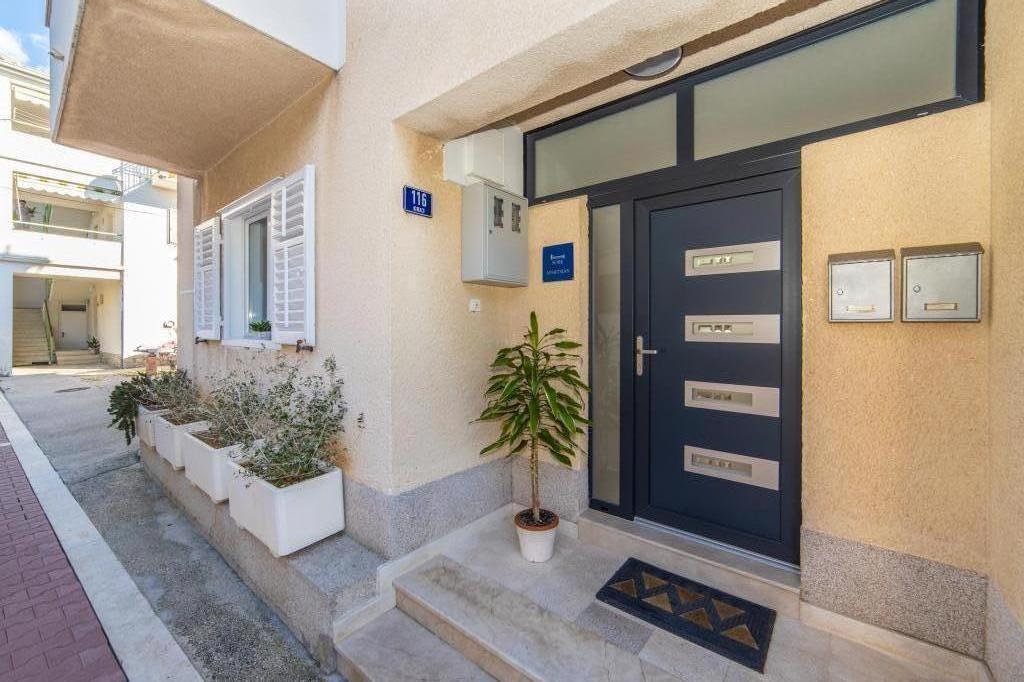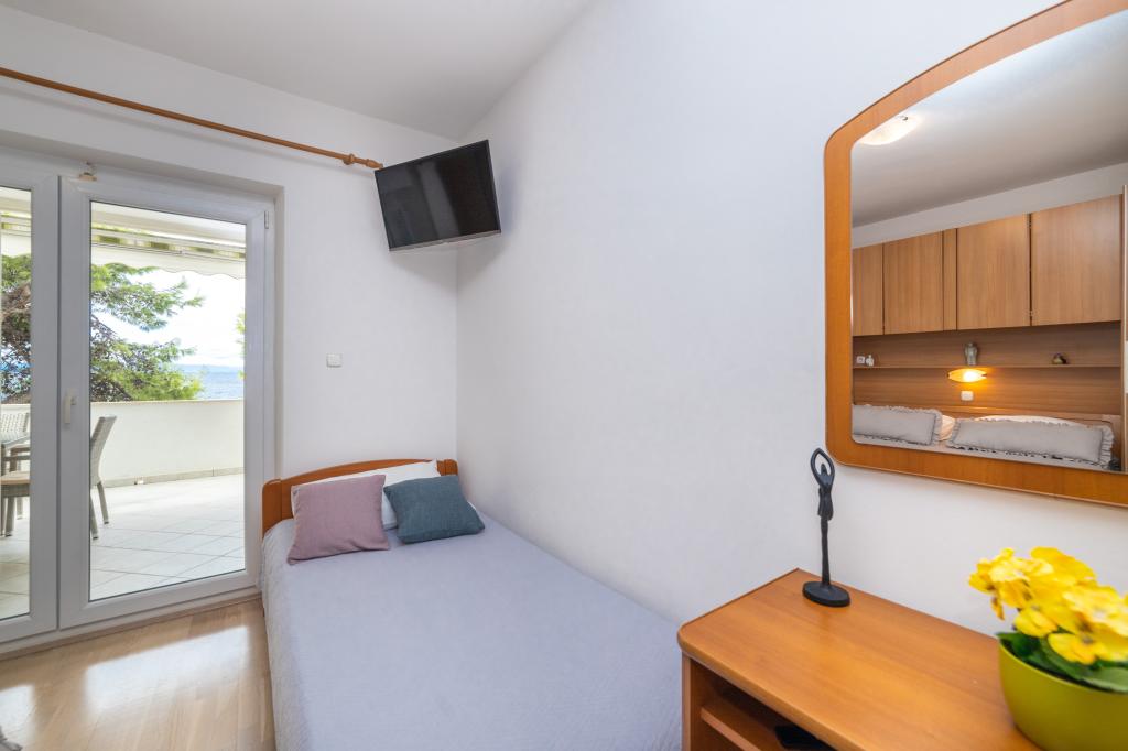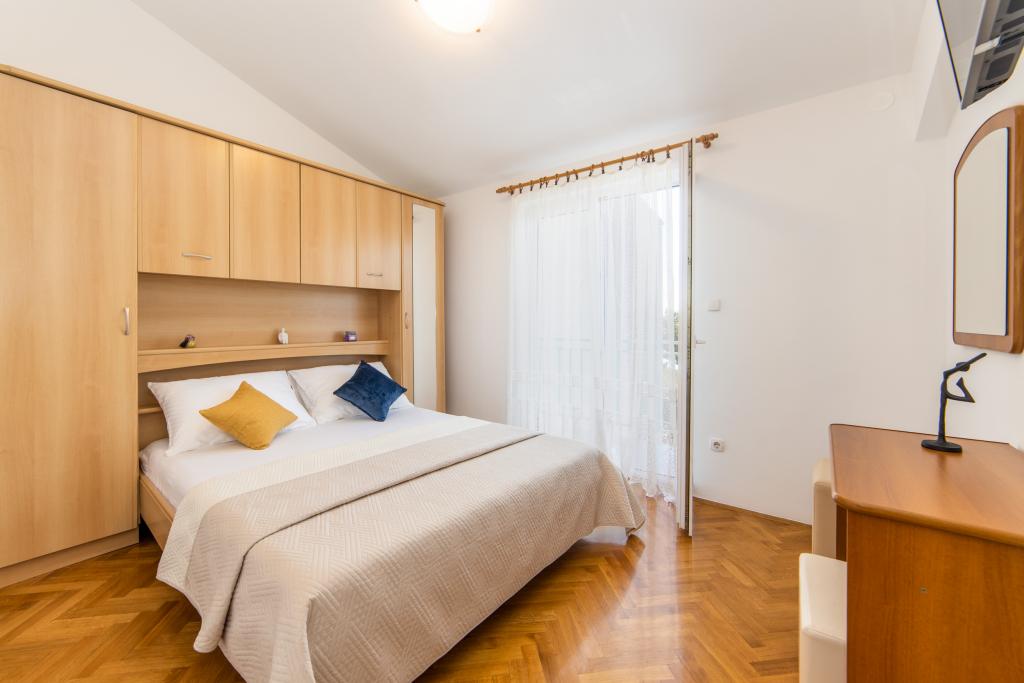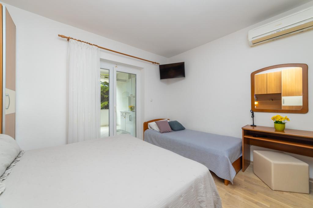 Nous avons des appartements dans deux bâtiments. Nous sommes situés à 100 m du centre de Tučepi, port de plaisance, pharmacie et médecin. Dans les environs de 20 à 50 m, il y a de nombreux restaurants, boulangeries, pâtisseries, cafés et un supermarché. Le stationnement est dans la cour entre les deux bâtiments. La maison 1 est la première rangée au bord de la mer et dispose de deux appartements 2+1 avec vue sur la mer et de grandes terrasses et de deux chambres avec salles de bains, réfrigérateurs et balcons pour deux personnes plus un lit supplémentaire. Ils sont situés au premier étage du bâtiment. Toutes les chambres et appartements sont climatisés. La maison 2 est située derrière la maison 1 et à 20 m de la mer. Il y a de grands appartements pour 4-5 personnes avec des entrées séparées, deux chambres séparées, une salle de bain et un salon récemment rénovés. Toutes les chambres des appartements sont climatisées et disposent de la télévision par satellite et d'Internet. Devant eux se trouve une grande terrasse avec vue sur la mer. Les appartements sont spacieux et mesurent entre 50 et 60 m2.