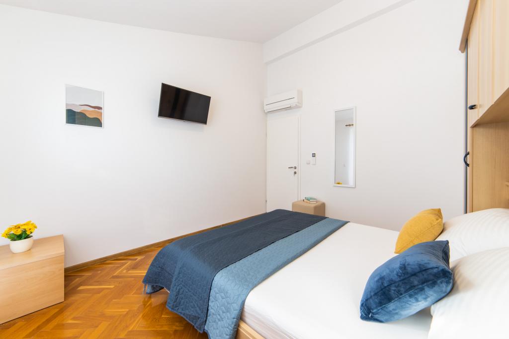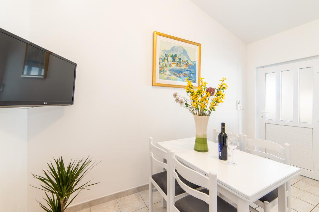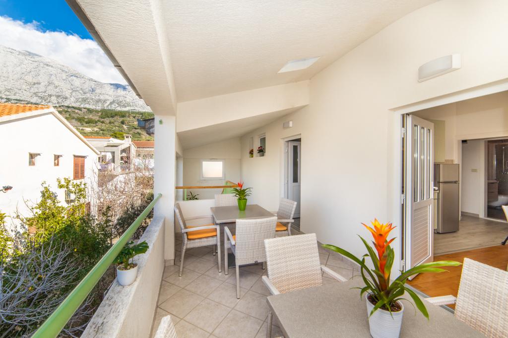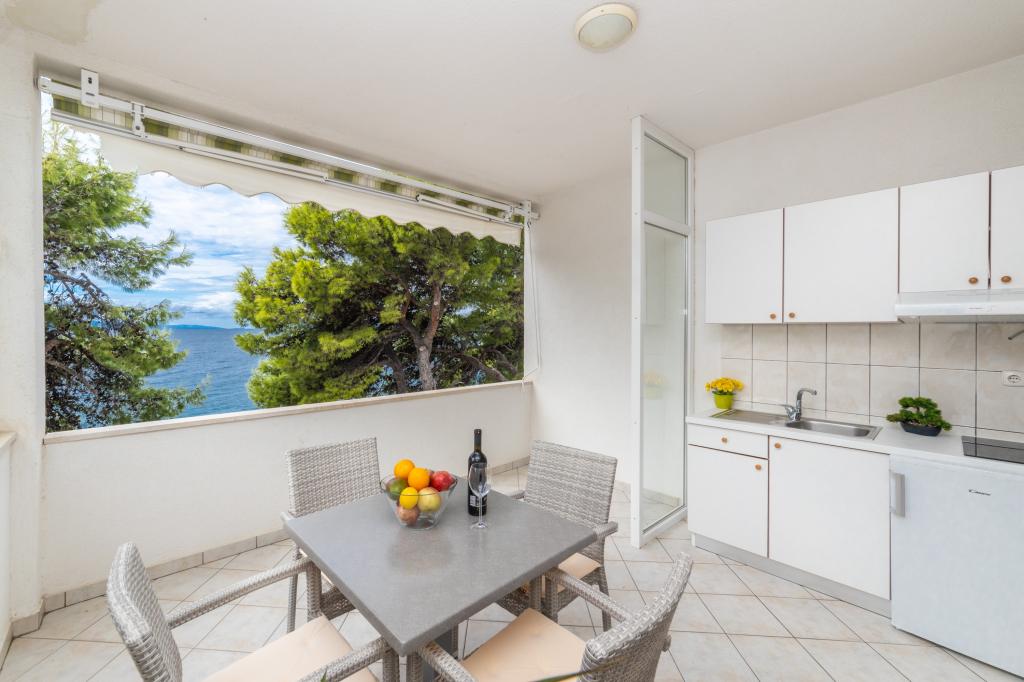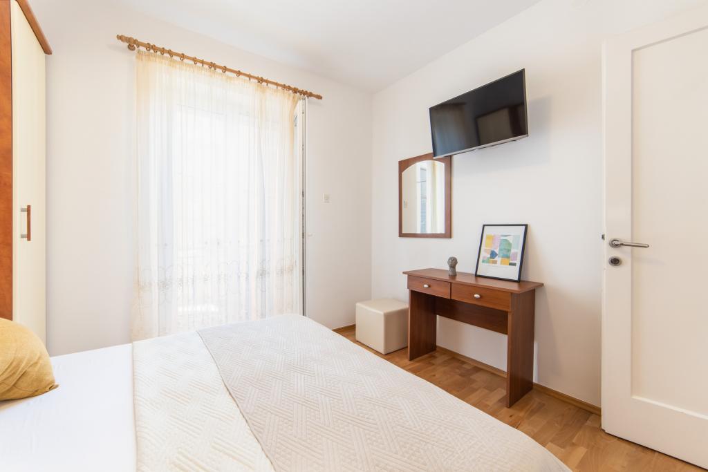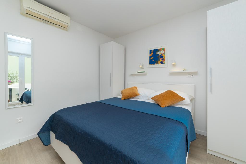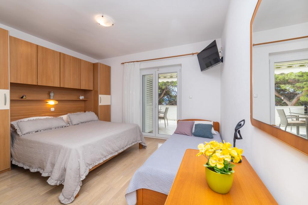 Nous avons des appartements dans deux bâtiments. Nous sommes situés à 100 m du centre de Tučepi, port de plaisance, pharmacie et médecin. Dans les environs de 20 à 50 m, il y a de nombreux restaurants, boulangeries, pâtisseries, cafés et un supermarché. Le stationnement est dans la cour entre les deux bâtiments. La maison 1 est la première rangée au bord de la mer et dispose de deux appartements 2+1 avec vue sur la mer et de grandes terrasses et de deux chambres avec salles de bains, réfrigérateurs et balcons pour deux personnes plus un lit supplémentaire. Ils sont situés au premier étage du bâtiment. Toutes les chambres et appartements sont climatisés. La maison 2 est située derrière la maison 1 et à 20 m de la mer. Il y a de grands appartements pour 4-5 personnes avec des entrées séparées, deux chambres séparées, une salle de bain et un salon récemment rénovés. Toutes les chambres des appartements sont climatisées et disposent de la télévision par satellite et d'Internet. Devant eux se trouve une grande terrasse avec vue sur la mer. Les appartements sont spacieux et mesurent entre 50 et 60 m2.