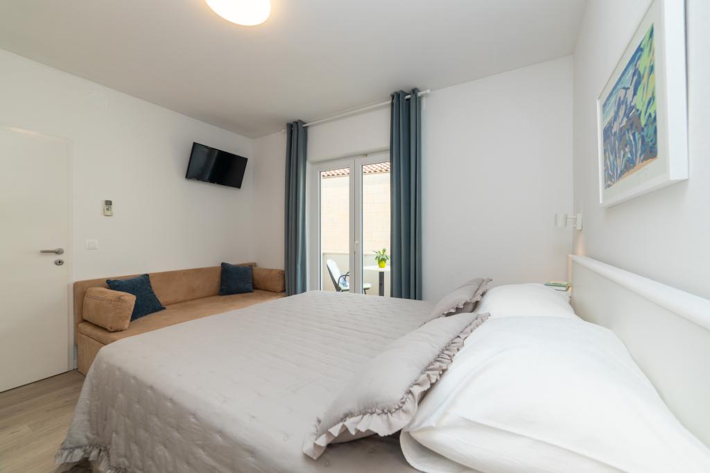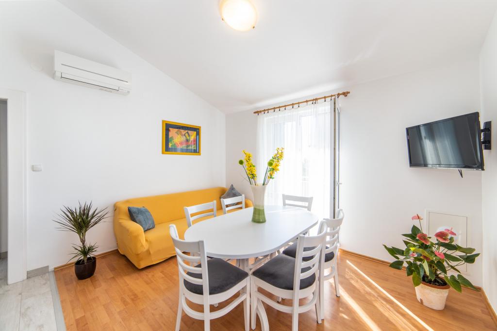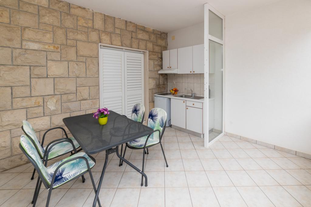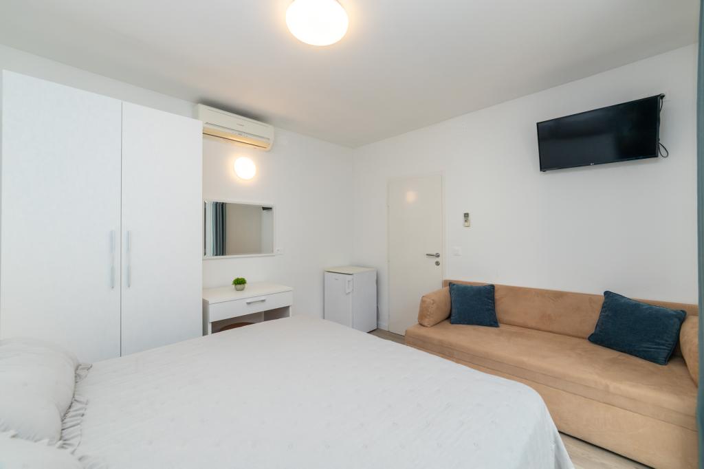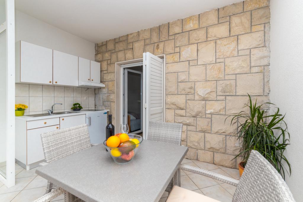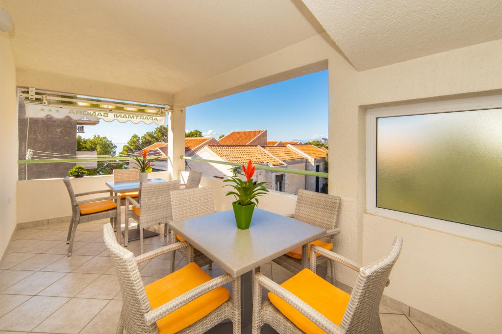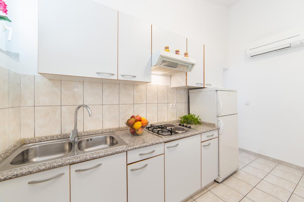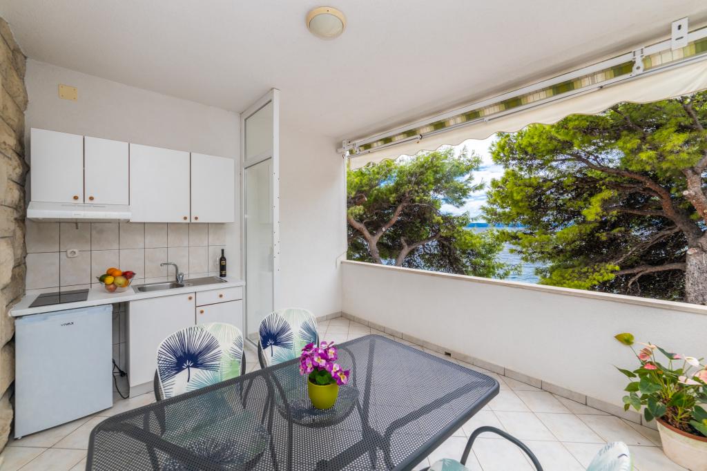 Nous avons des appartements dans deux bâtiments. Nous sommes situés à 100 m du centre de Tučepi, port de plaisance, pharmacie et médecin. Dans les environs de 20 à 50 m, il y a de nombreux restaurants, boulangeries, pâtisseries, cafés et un supermarché. Le stationnement est dans la cour entre les deux bâtiments. La maison 1 est la première rangée au bord de la mer et dispose de deux appartements 2+1 avec vue sur la mer et de grandes terrasses et de deux chambres avec salles de bains, réfrigérateurs et balcons pour deux personnes plus un lit supplémentaire. Ils sont situés au premier étage du bâtiment. Toutes les chambres et appartements sont climatisés. La maison 2 est située derrière la maison 1 et à 20 m de la mer. Il y a de grands appartements pour 4-5 personnes avec des entrées séparées, deux chambres séparées, une salle de bain et un salon récemment rénovés. Toutes les chambres des appartements sont climatisées et disposent de la télévision par satellite et d'Internet. Devant eux se trouve une grande terrasse avec vue sur la mer. Les appartements sont spacieux et mesurent entre 50 et 60 m2.