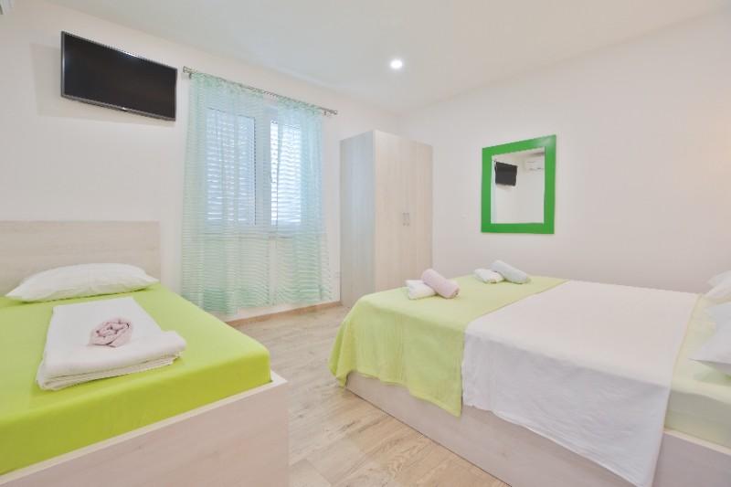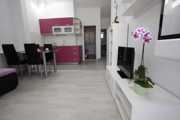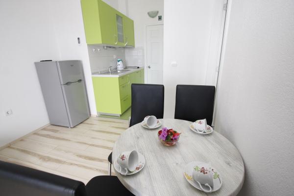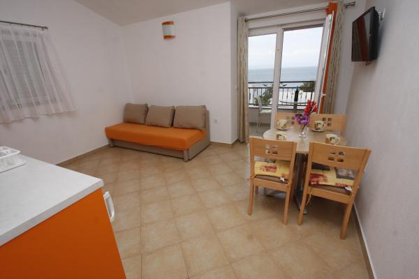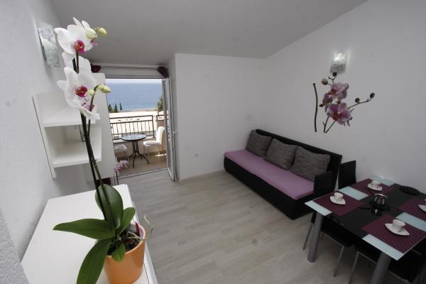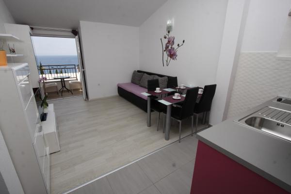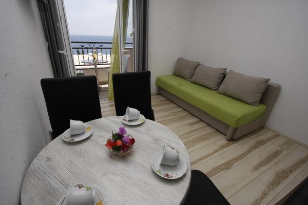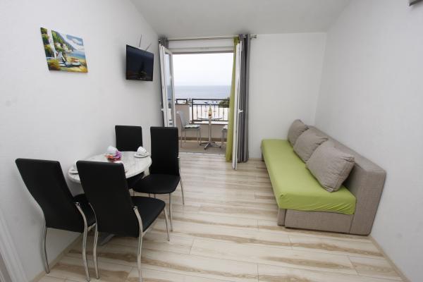 Excellent hôtel. L'appartement était parfaitement propre et bien équipée. Superbe vue sur la mer. Hôtes sympathiques et à votre service. La plage est à deux minutes à pied, et il y a toutes les autres installations nécessaires (magasins, bars, restaurants, etc.). Centre est à environ 5 min. Une chose très importante dans un lieu de passage sur la route principale (sur le chemin de la plage), il y a un feu de circulation. Sinon, les commentaires que je ne pas écrire, mais cette fois je dois vraiment parce que je suis très heureux. Hautement recommandé!