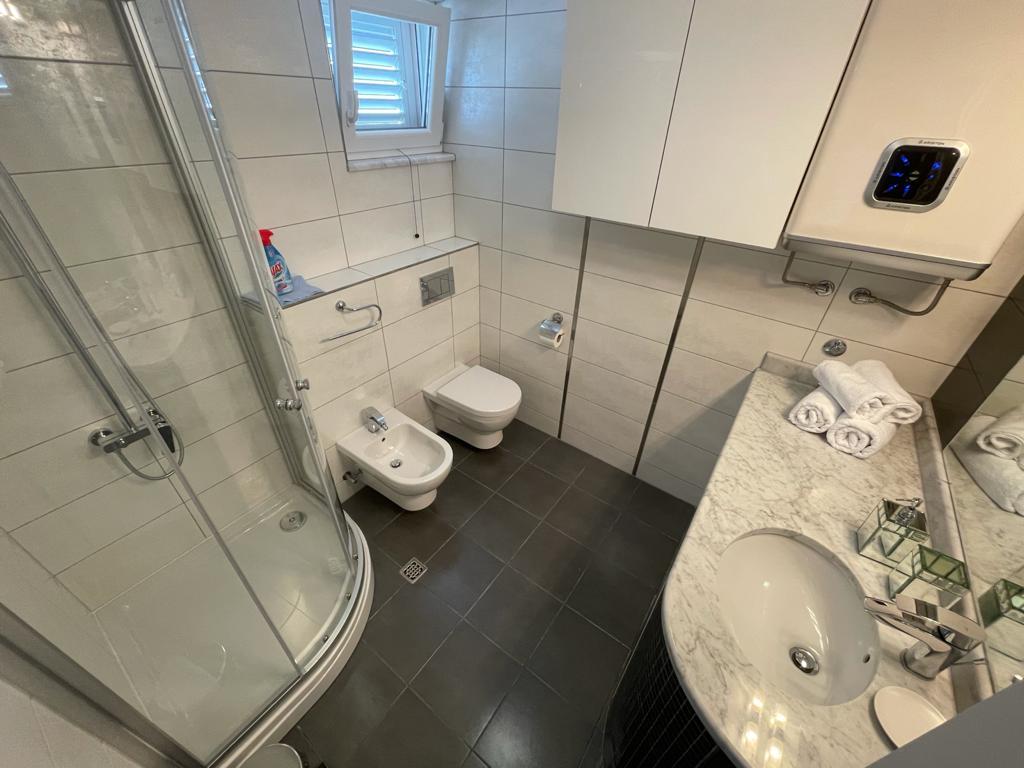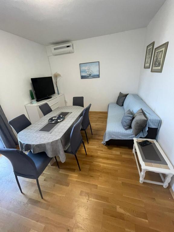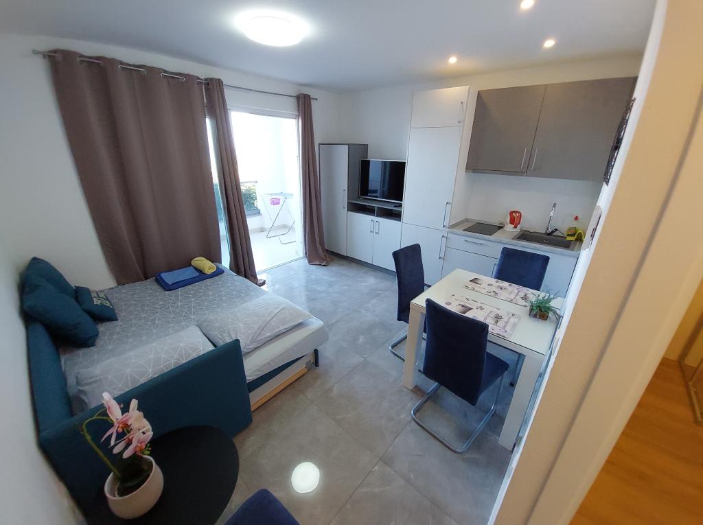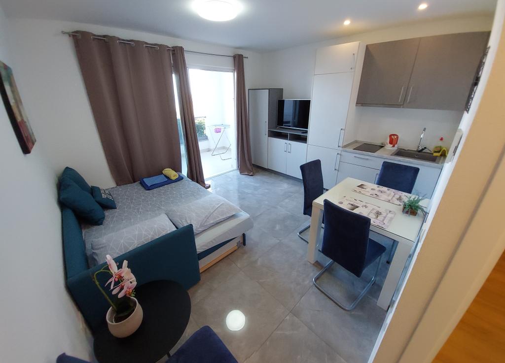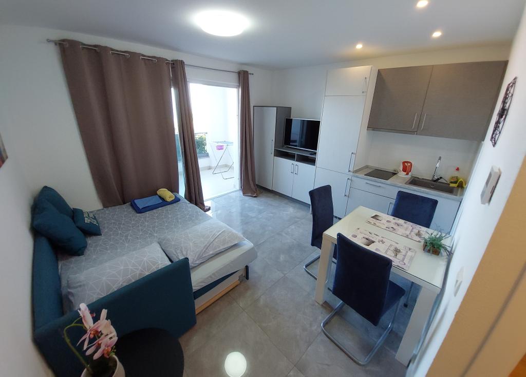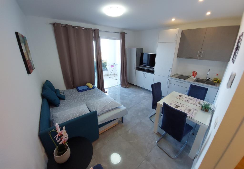 Super appartement, meublé de façon moderne, confortable et propre avec une grande terrasse et une belle vue sur la mer. Salle de bain et cuisine spacieuses, climatisation silencieuse. Il n'est qu'à 2 minutes de la mer. Parking juste à côté de la maison. Gentil et attentionné Mme Vesna. Nous le recommandons et nous reviendrons certainement ici.