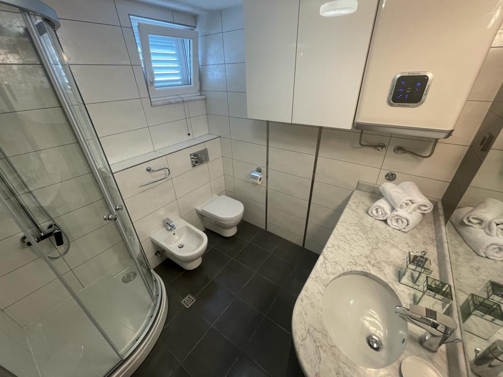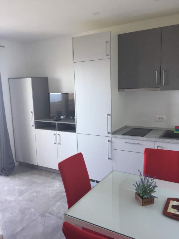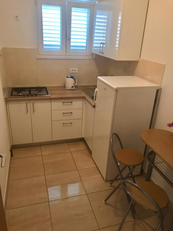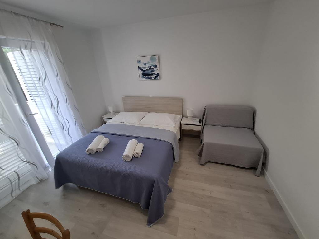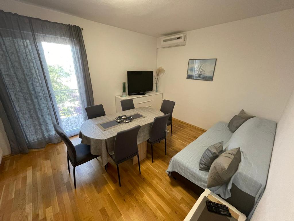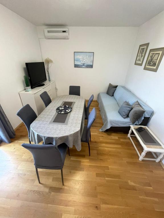 Super appartement, meublé de façon moderne, confortable et propre avec une grande terrasse et une belle vue sur la mer. Salle de bain et cuisine spacieuses, climatisation silencieuse. Il n'est qu'à 2 minutes de la mer. Parking juste à côté de la maison. Gentil et attentionné Mme Vesna. Nous le recommandons et nous reviendrons certainement ici.