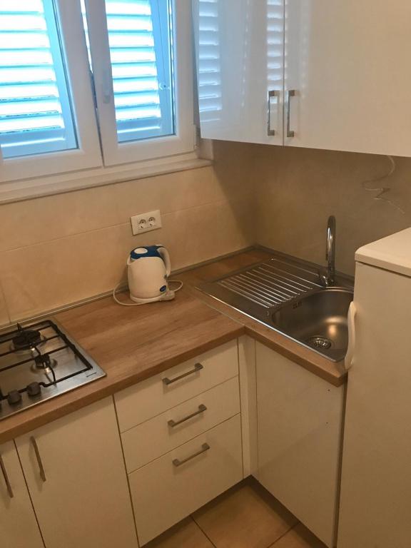 Nous sommes restés 6 nuits et l'appartement est fortement recommandé. Tout est propre et bien rangé, le lit est très confortable. Le salon dispose de la climatisation, la chambre dispose également d'un climatiseur séparé, ainsi que d'Internet et d'une télévision. Terrasse avec vue sur la mer et la mer à 2 minutes à pied. L'hôte dans ce cas, Vesna, nous a accueillis et hébergés gentiment, et tous les éloges pour sa gentillesse