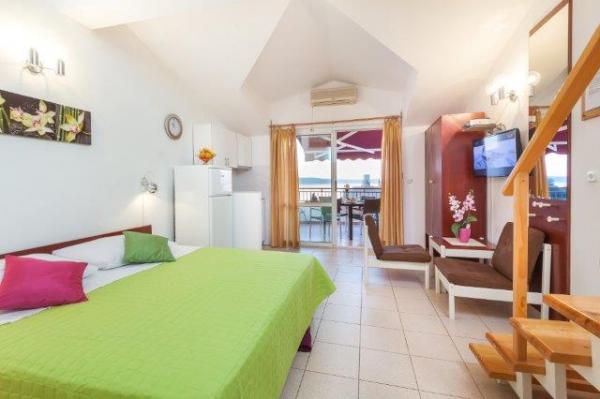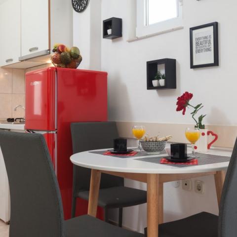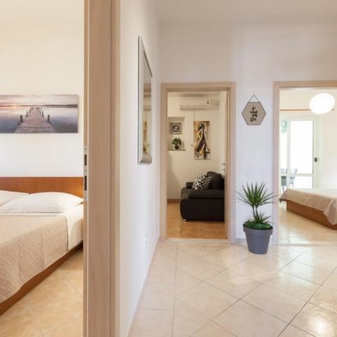 La Villa Nela est à seulement 150 mètres de la plage, à côté de l'hôtel Alga. La proximité de la plage, des terrains de sport, de la promenade, des restaurants, des cafés et de toutes les autres installations nécessaires pour des vacances complètes, garantit un été agréable et inoubliable. La famille Covic n'est pas seulement les propriétaires de la villa, mais aussi le personnel de la villa qui s'occupe de tout ce qui rendra vos vacances à Tučepi aussi agréables que possible. Ce type d'hospitalité donne aux clients de la Villa Nela une atmosphère familiale, un service personnalisé et très cordial que vous ne pouvez pas obtenir dans les grands hôtels. Avec tradition et courtoisie, Villa Nela vous offre tout ce qu'un établissement touristique de premier ordre de ce type peut offrir. Les appartements disposent de leur propre salle de bain, climatisation, TV satellite, connexion Internet sans fil, coffre-fort, grands balcons spacieux et parking sécurisé devant la villa. Le climat est désinfecté et les appartements sont d'une propreté impeccable.